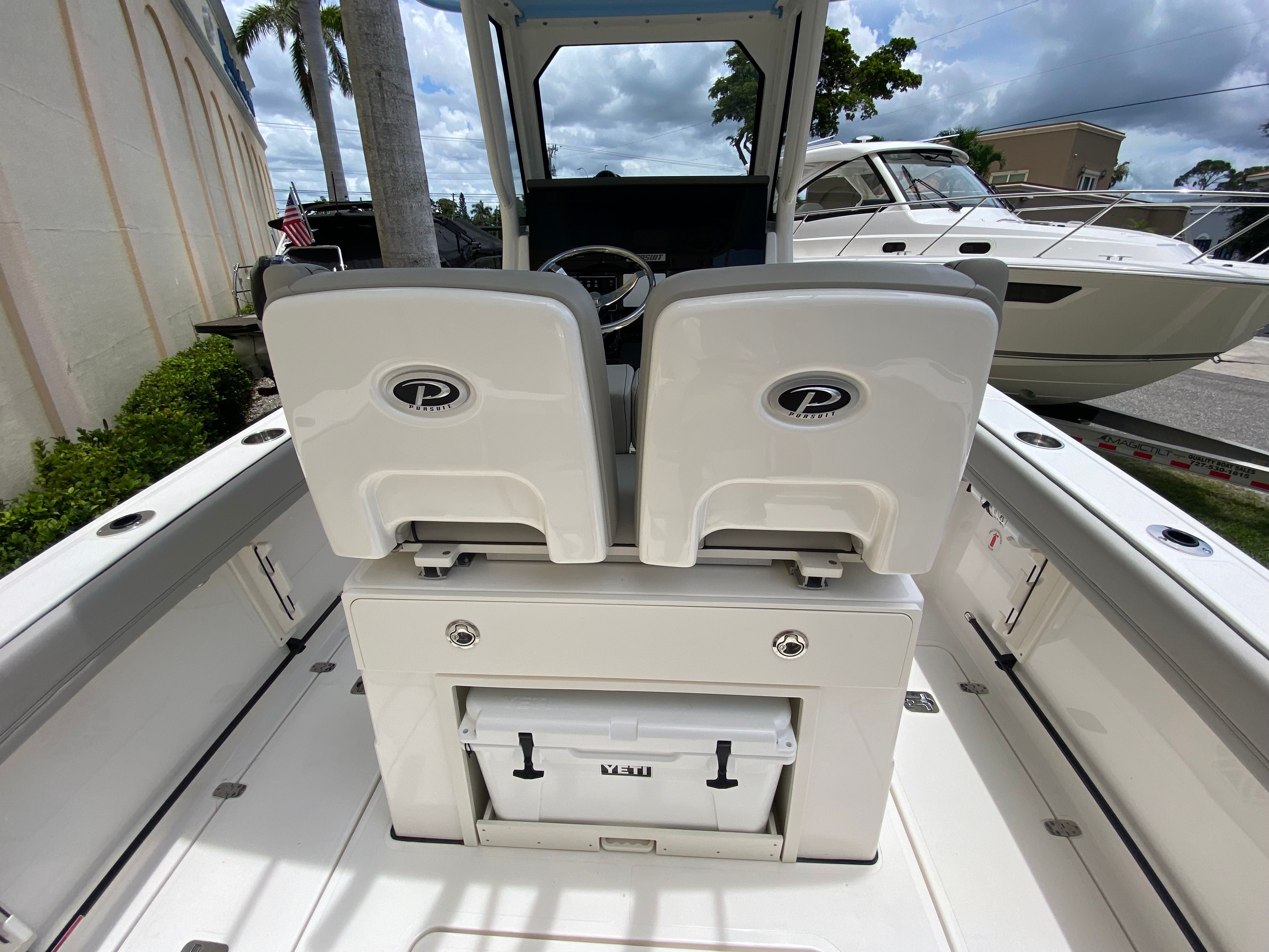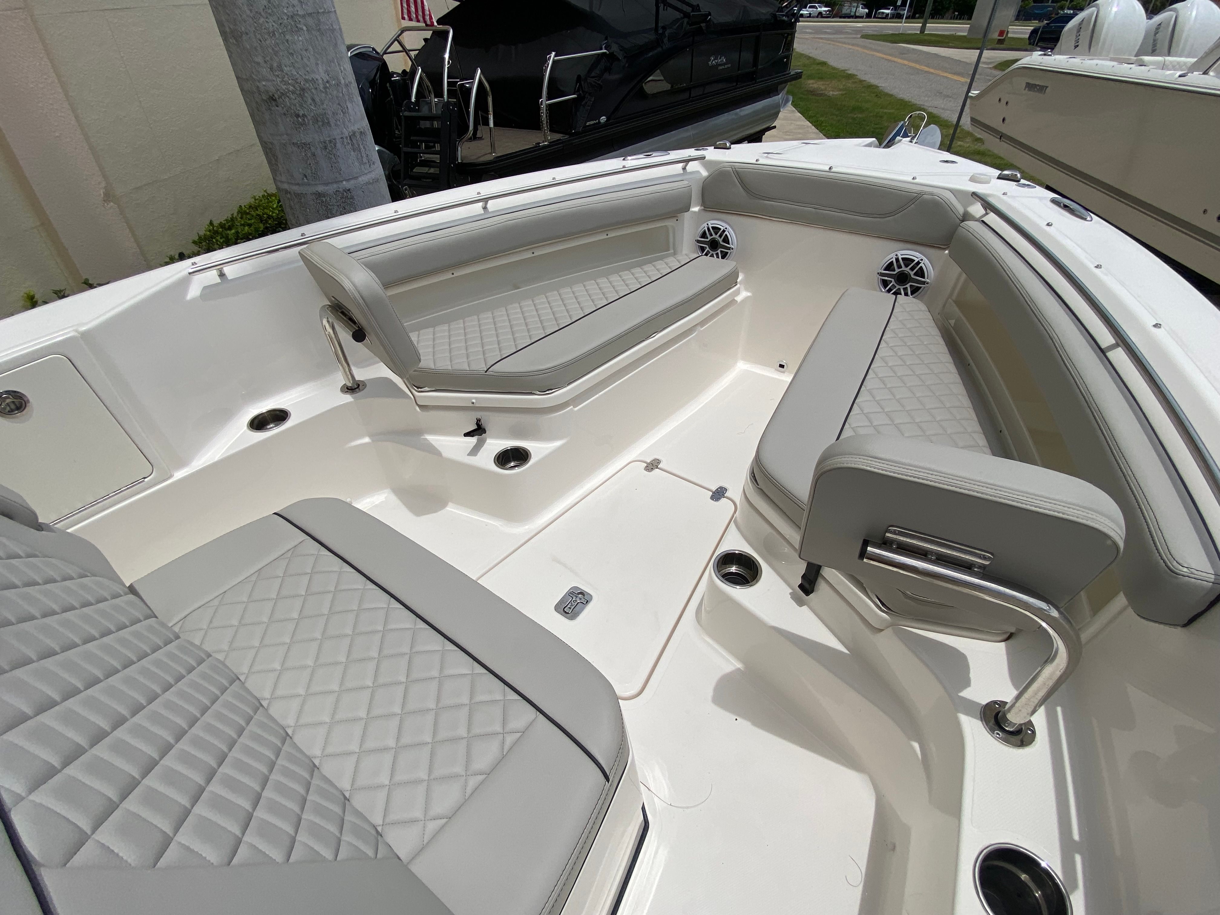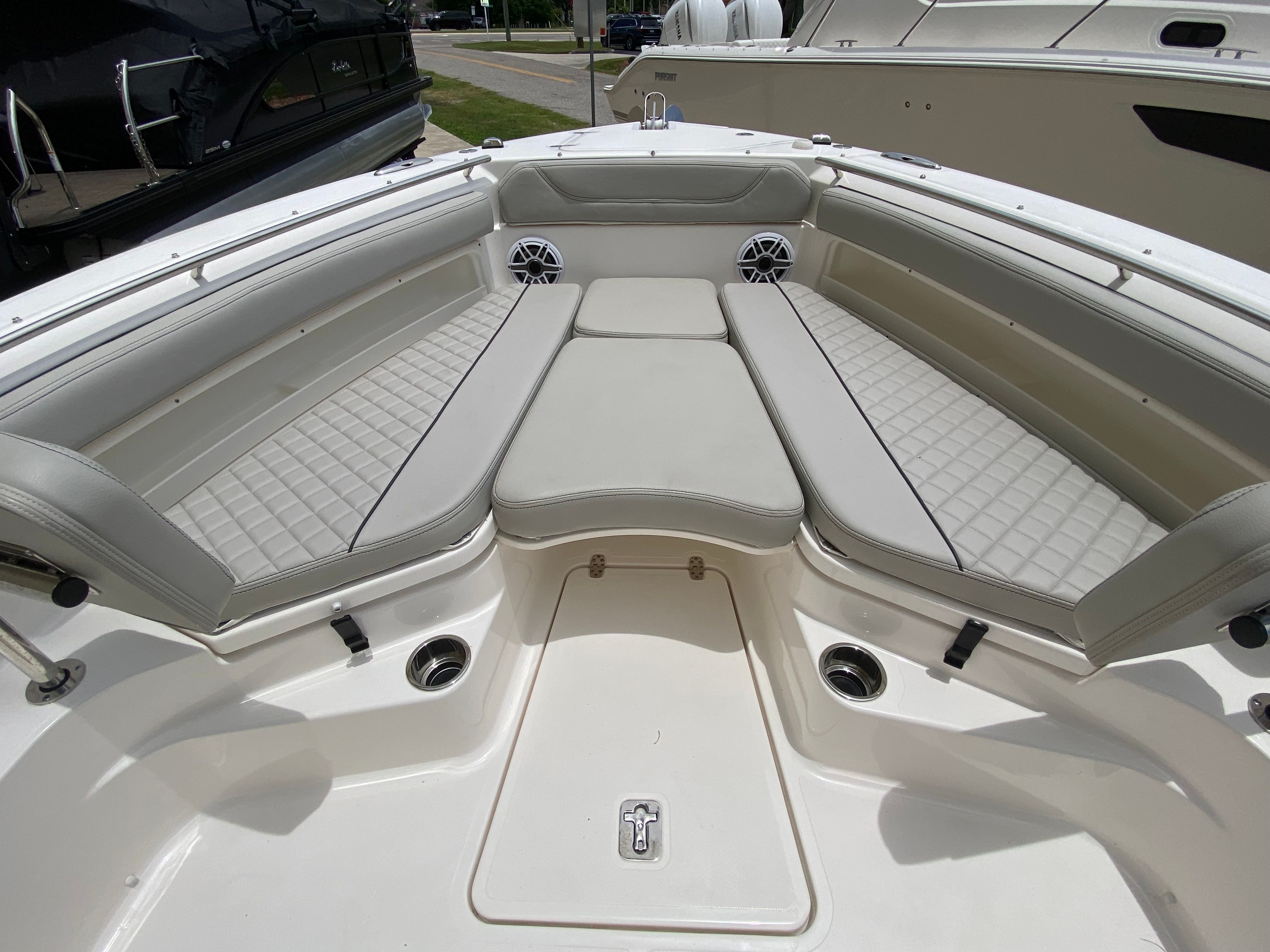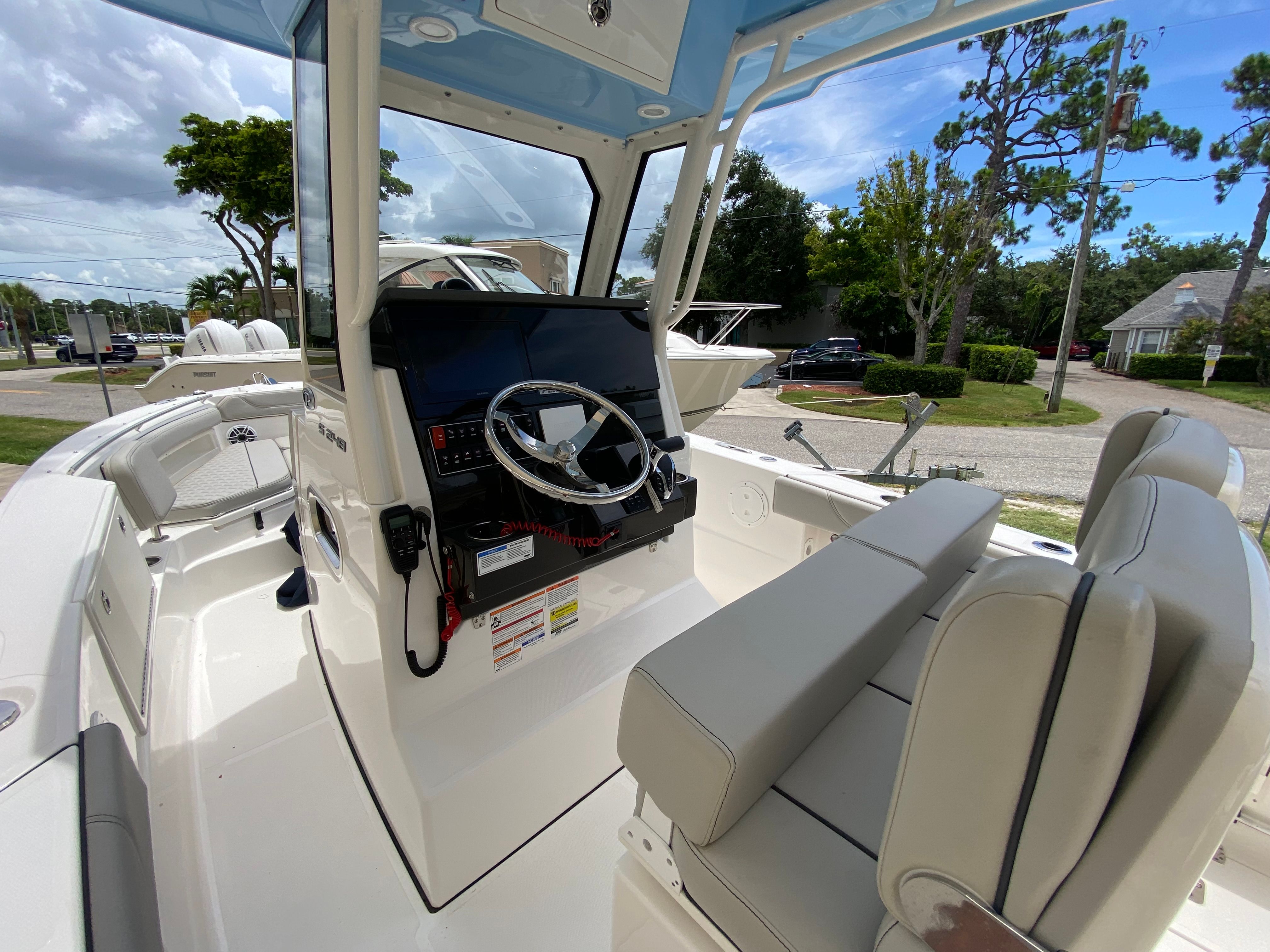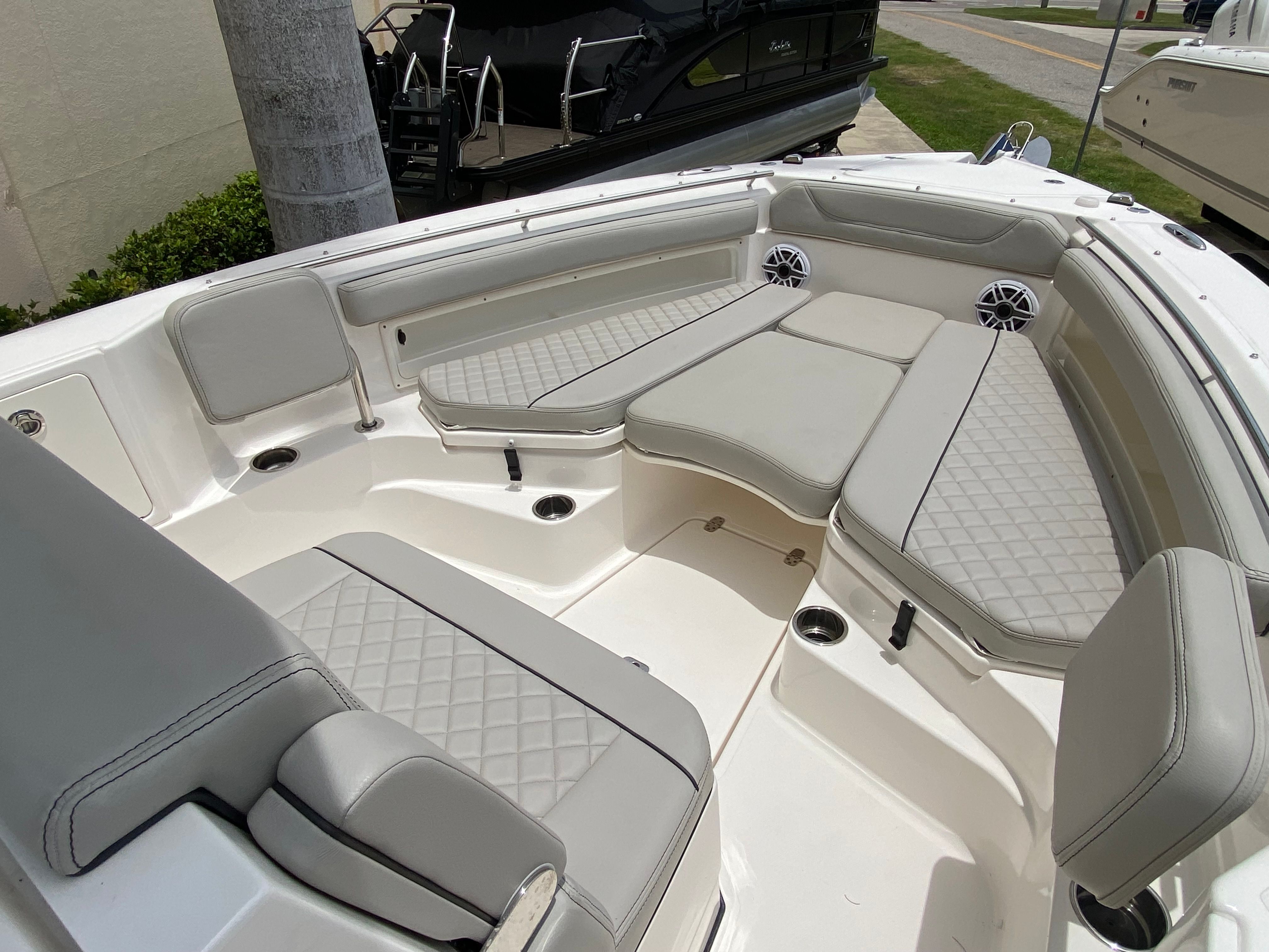 The Pursuit S 248 Center Console shines in a variety of scenarios, making it the perfect choice for families, anglers, and boating enthusiasts alike. Imagine setting out for a day of fishing with friends, taking advantage of the spacious deck and comfortable seating. Or picture a family outing, with kids enjoying the sunpad and adults relaxing under the Med style sunshade.This boat is equally suited for luxury getaways, offering the amenities and style needed for entertaining guests or enjoying a romantic sunset cruise. The combination of performance, comfort, and versatility ensures that every outing is tailored to your preferences, whether you are seeking adventure, relaxation, or a bit of both.