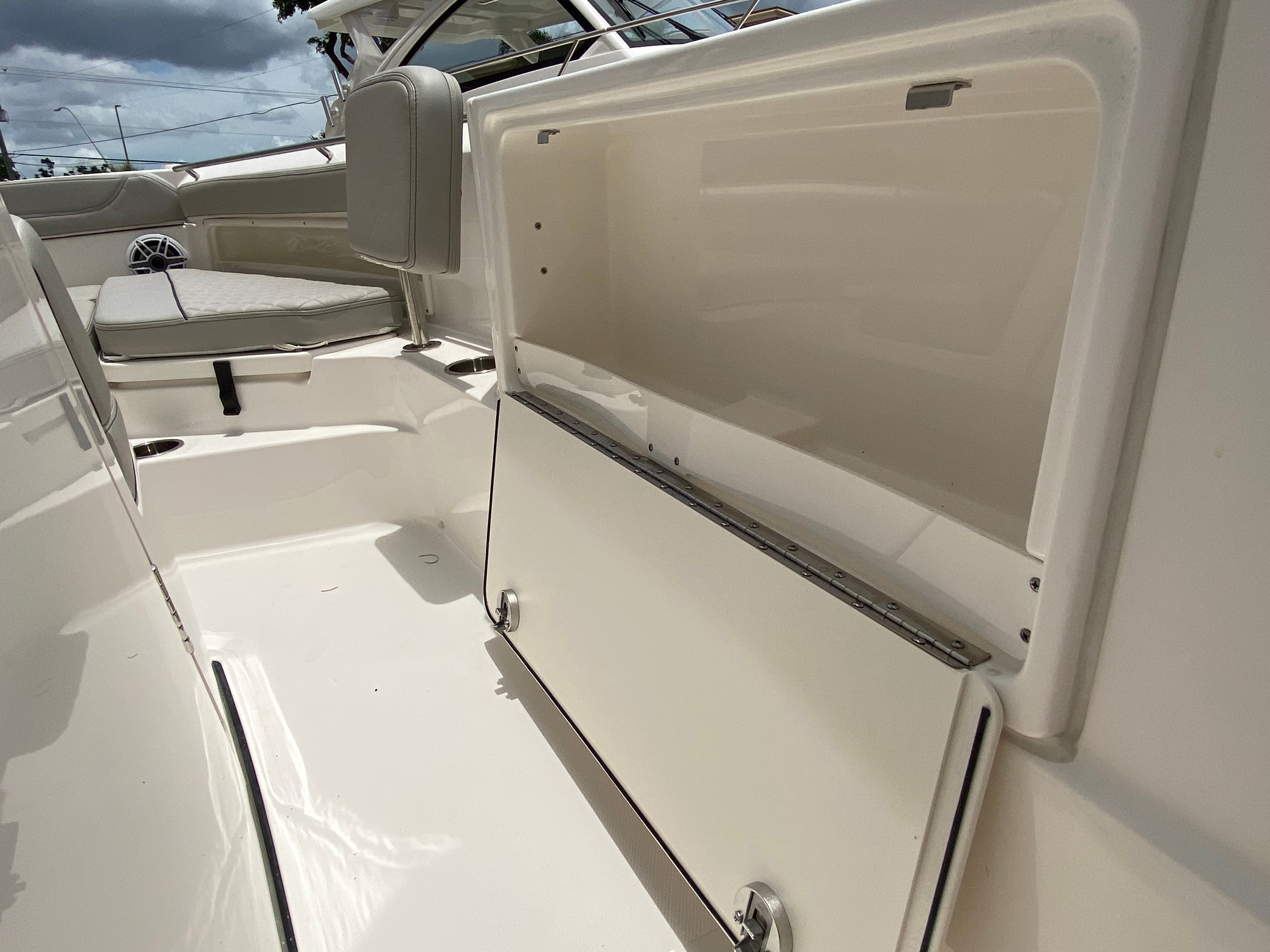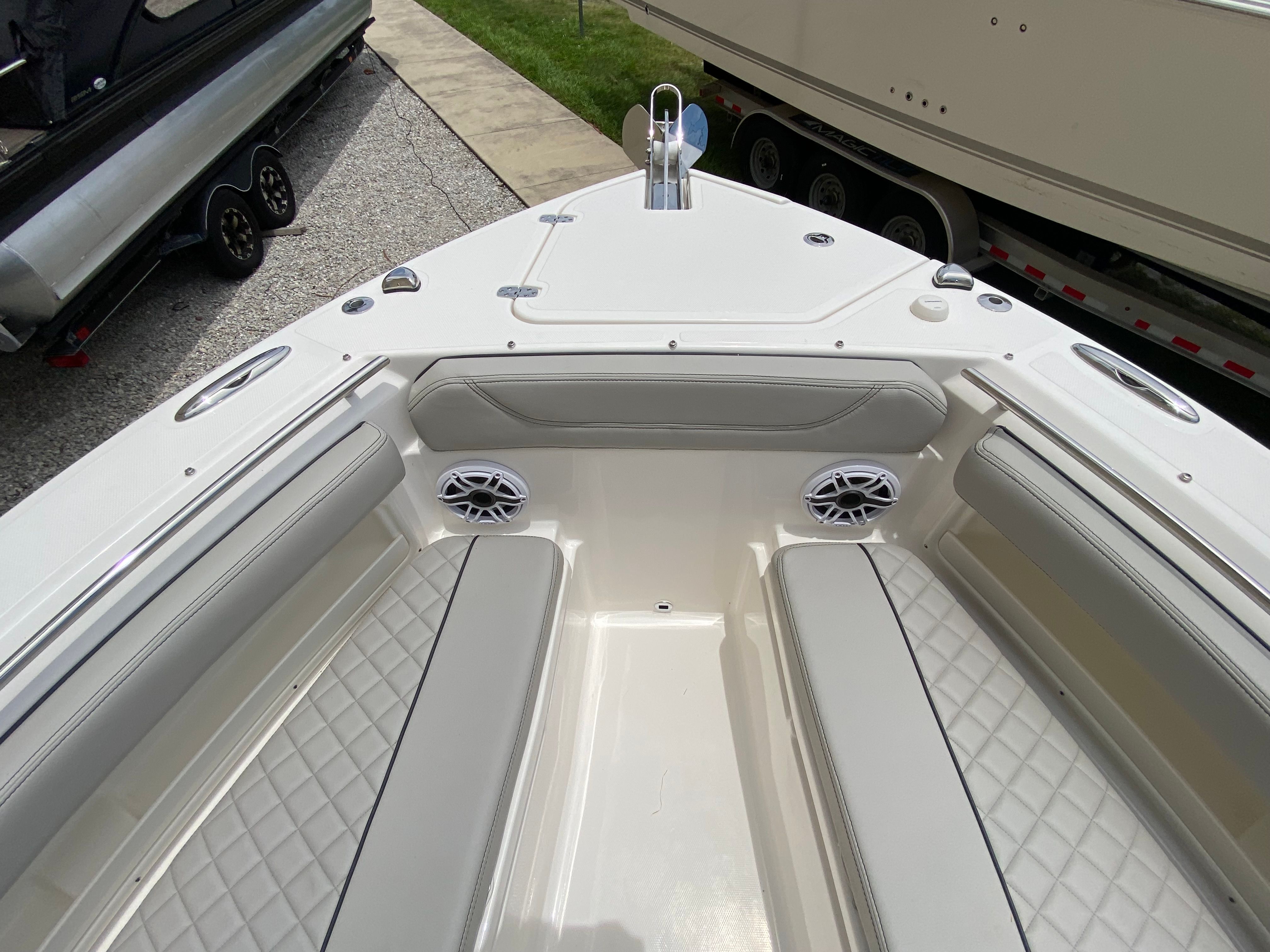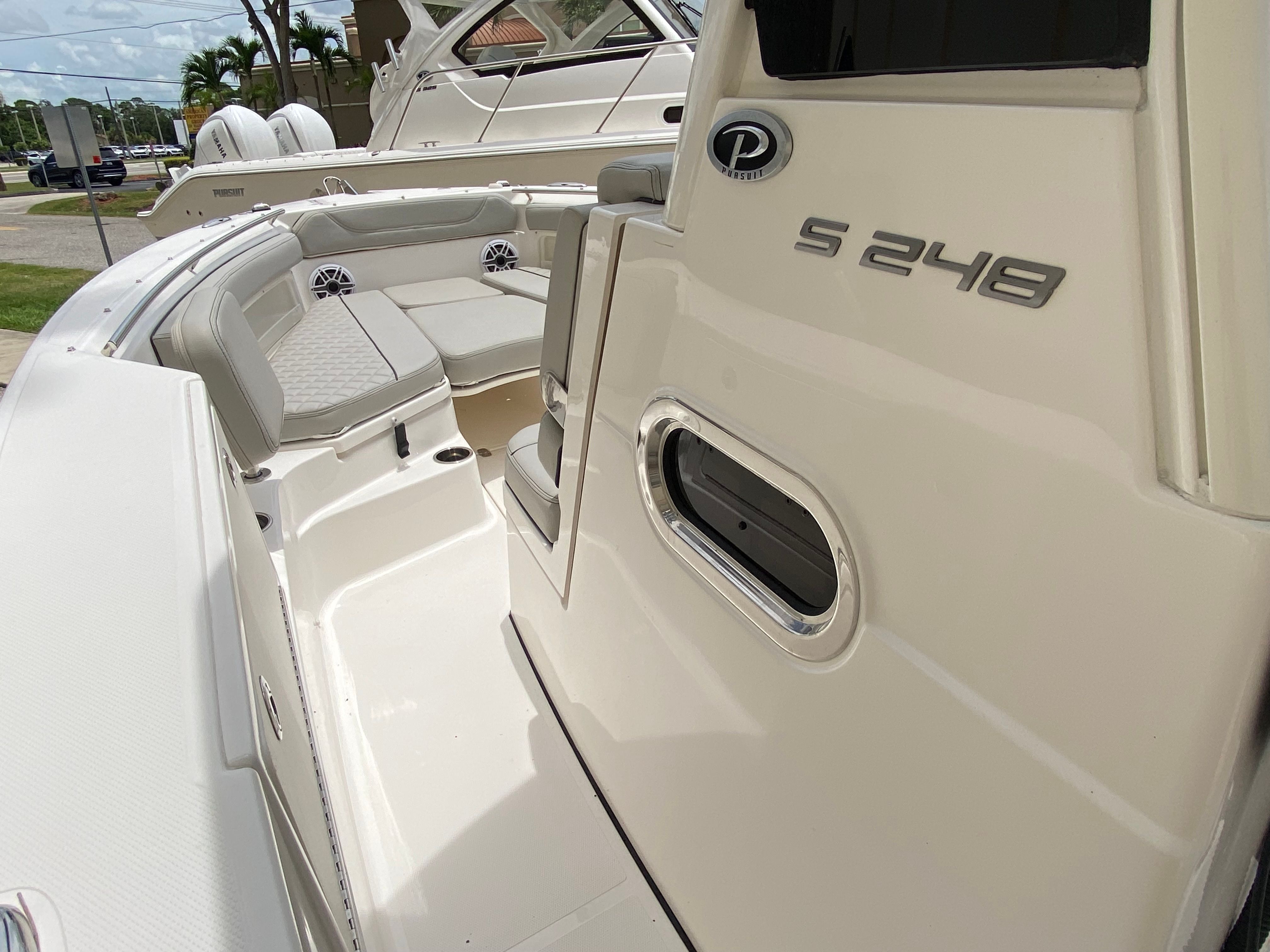 The Pursuit S 248 is designed with practicality in mind, making ownership as enjoyable as it is effortless. The fresh water system ensures you are always prepared for a day on the water, whether you need to rinse off gear or refresh after a swim. The bow boarding ladder simplifies beach landings and water access, making it easy for everyone to get on and off the boat.Storage is cleverly integrated throughout the boat, allowing you to stow away essentials without sacrificing space or comfort. The efficient hull design contributes to fuel economy, so you can spend more time exploring and less time refueling. Docking is made easier with the boat’s agile handling and well-placed features, ensuring stress-free arrivals and departures at any marina or dock.