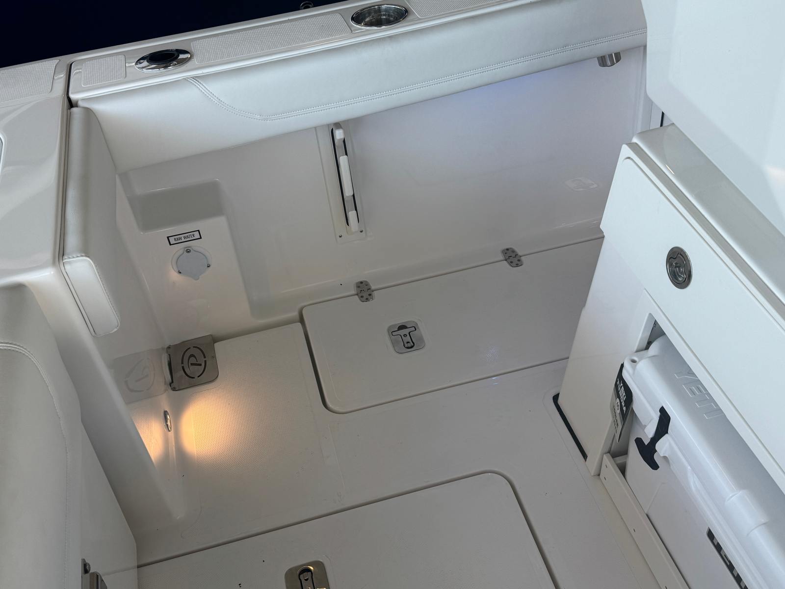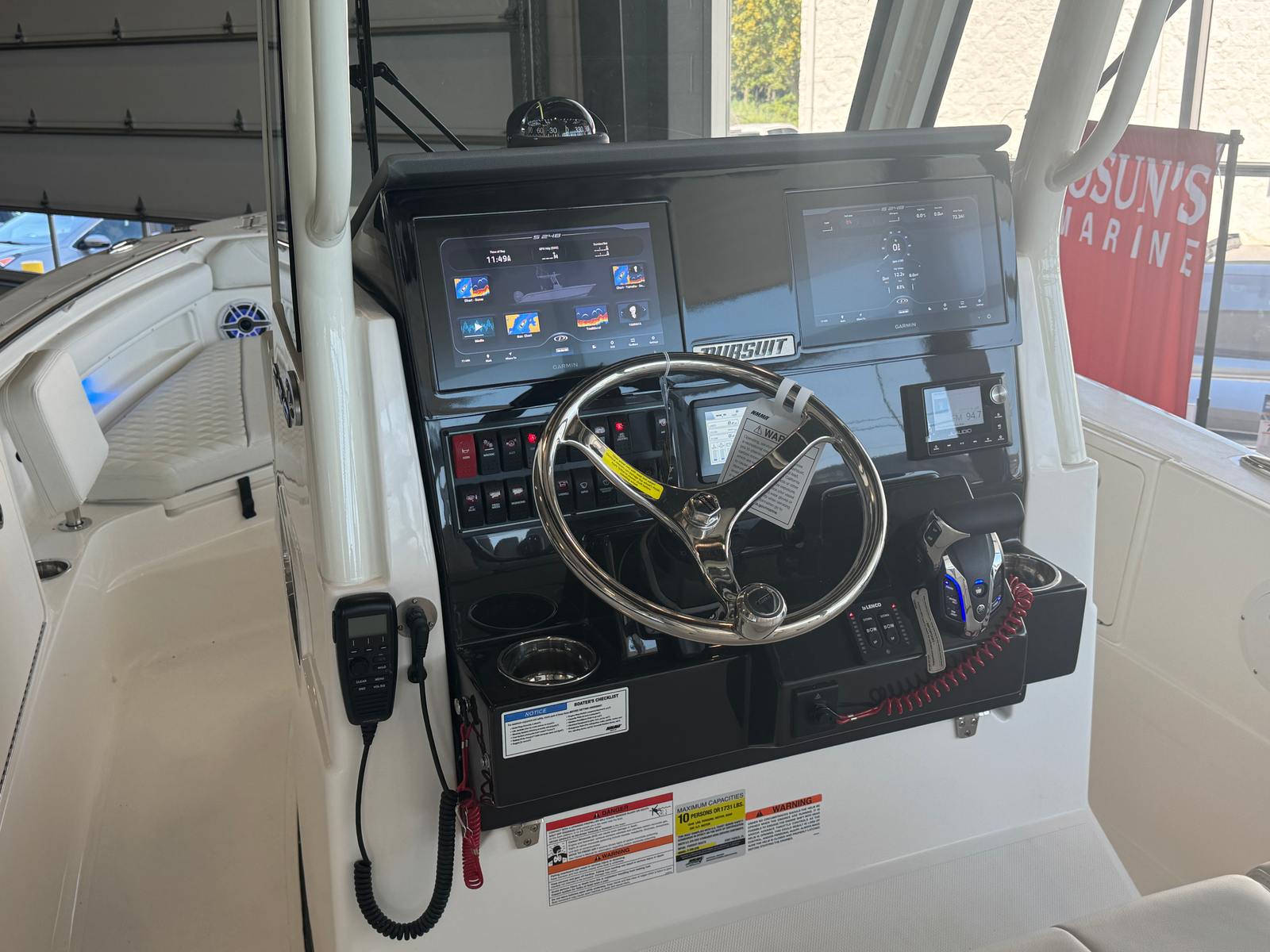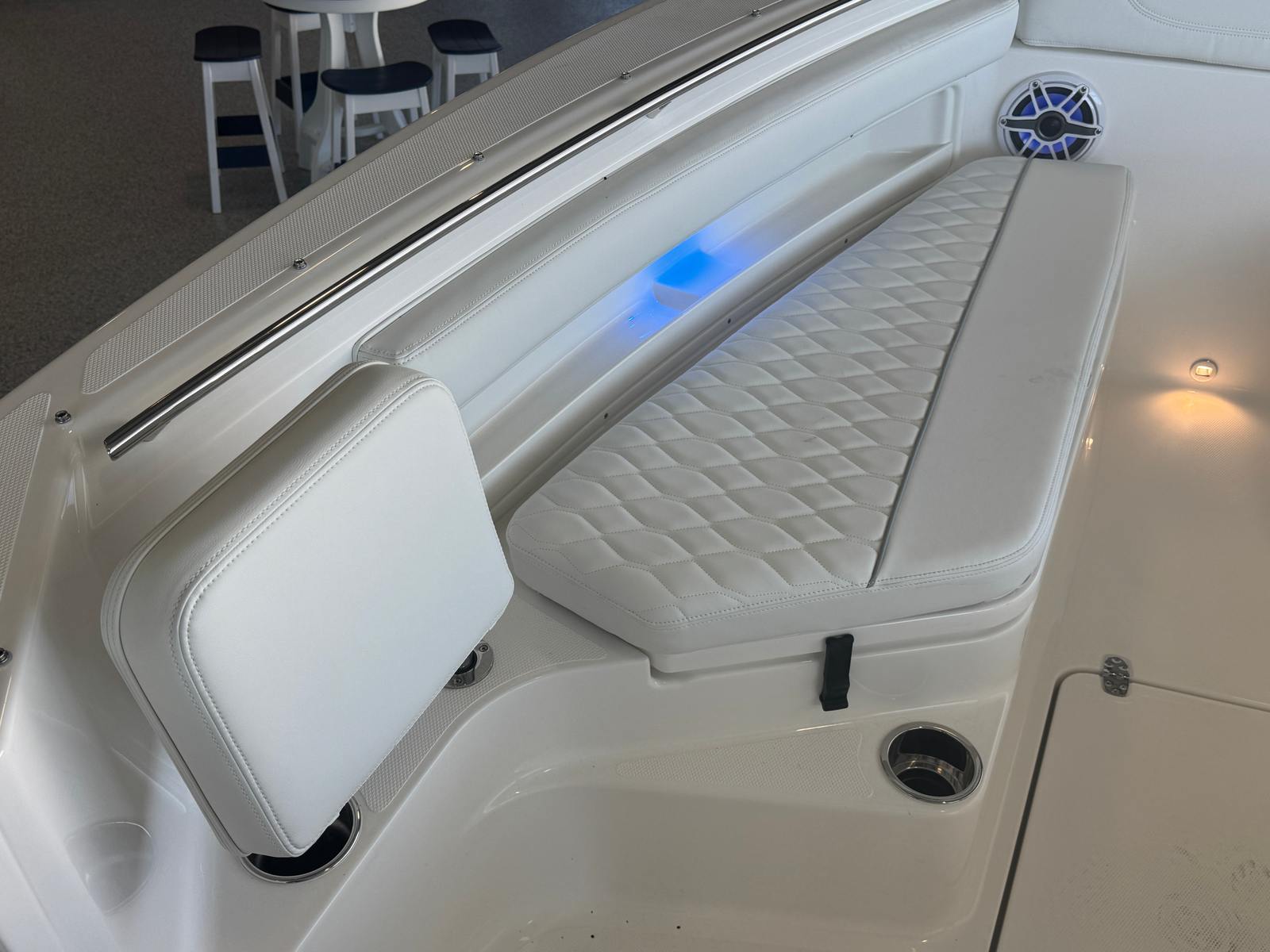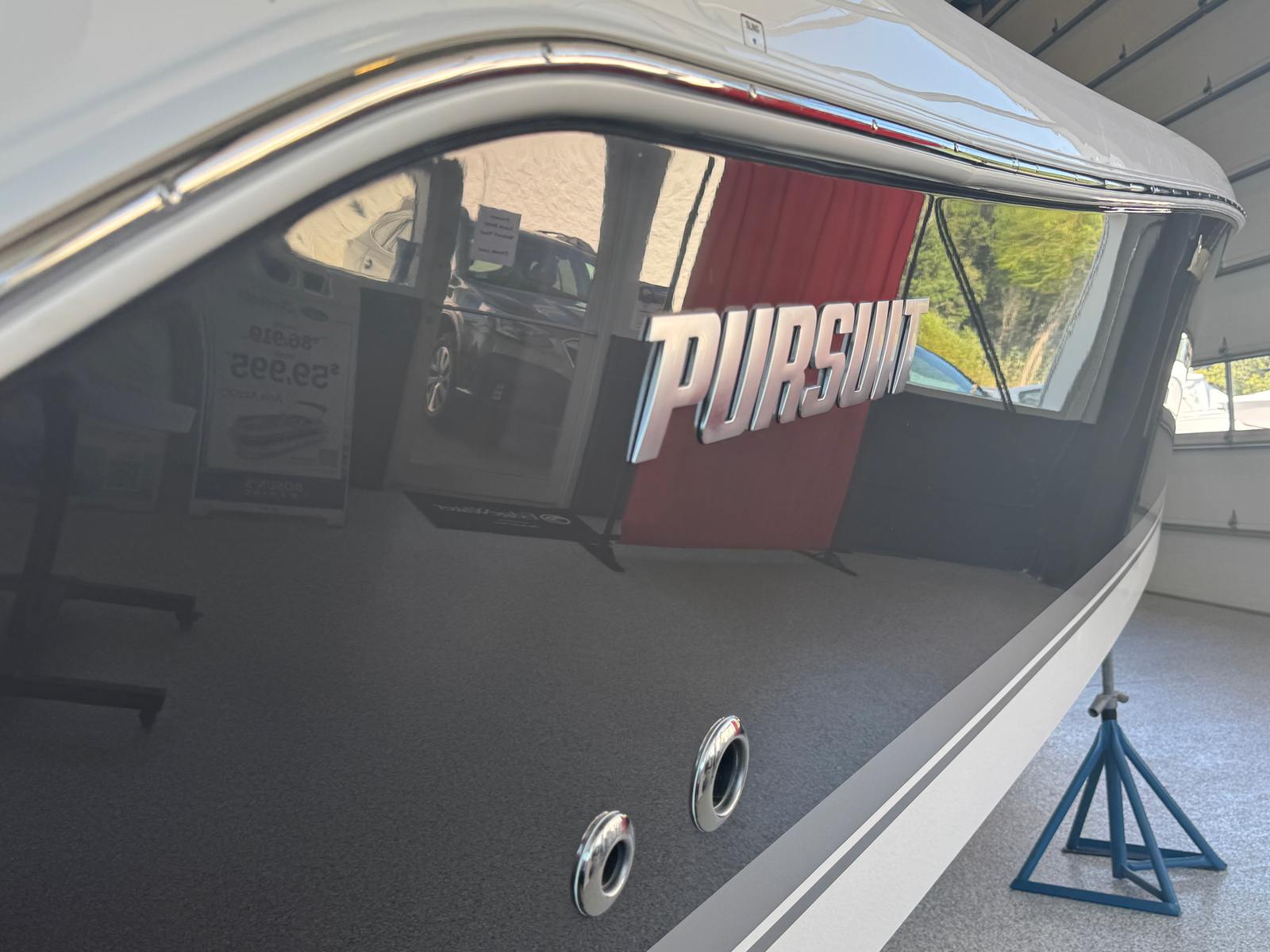 The Pursuit S 248 is loaded with premium features designed to enhance your time on the water. The hull, helm, and hardtop liner are finished in a sophisticated Carbon color, complemented by a Platinum bootstripe for a modern, upscale look. The upgraded white and gray upholstery not only adds a touch of elegance but also provides superior comfort for you and your guests.For those who value convenience and ease of use, the windlass anchor system with remote allows for effortless anchoring, while the electric freshwater head with a 6-gallon holding tank (requires the Fresh Water System option) adds a level of comfort and privacy rarely found in boats of this size. When the sun sets, the Pursuit S 248 transforms into a dazzling spectacle with three all-color Sea Blaze Quattro Spectrum underwater lights and four mid-level cockpit accent lights in LED blue, creating an inviting and vibrant atmosphere for evening cruises or dockside gatherings.