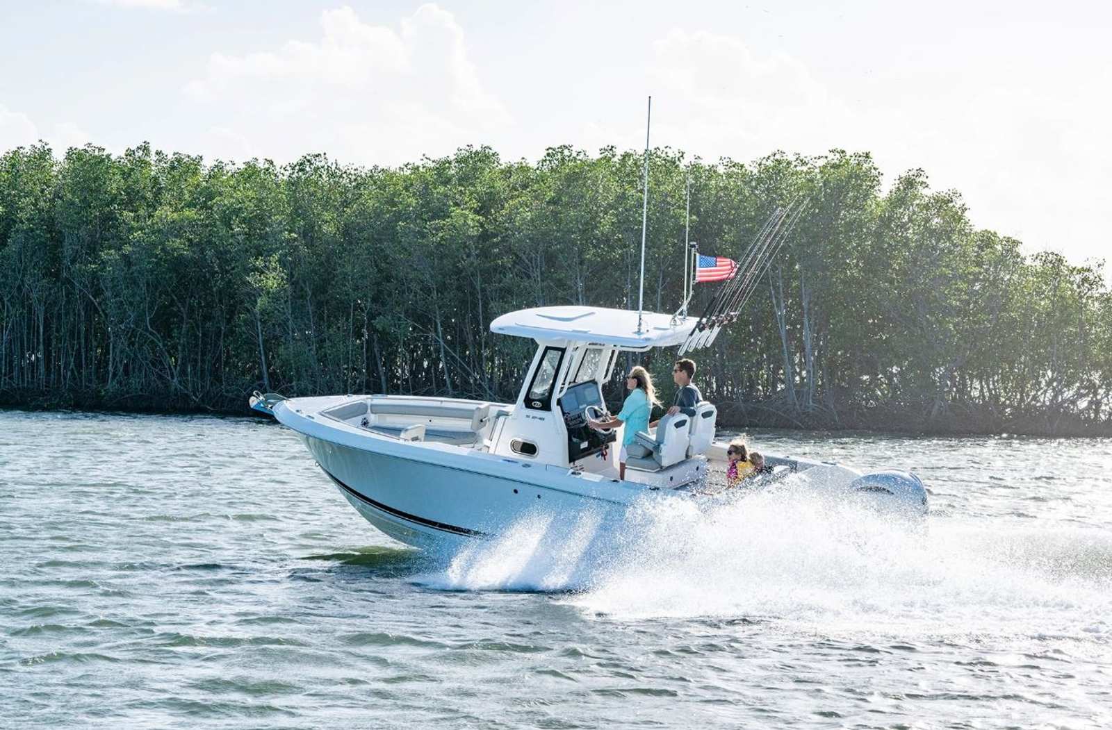 The 2026 Pursuit S 248 is a new, meticulously crafted center console boat measuring just over 25 feet in length. Its sleek lines, contemporary design, and premium finishes make it a standout in any marina or on open water. Pursuit’s reputation for quality and attention to detail is evident in every inch of this vessel, from its robust hull construction to its sophisticated helm and upgraded upholstery. This model is perfect for those who demand both style and substance in their boating experience.