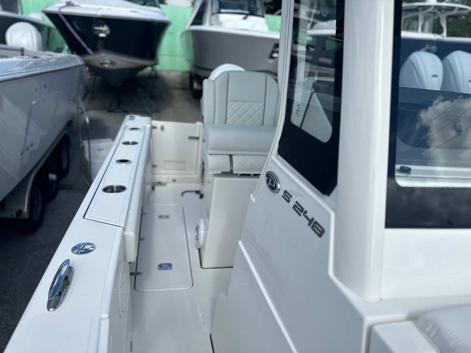 Powering the Pursuit S 248 is a single, robust engine delivering 300 horsepower. This setup provides the perfect balance of speed, efficiency, and reliability, ensuring you have the power you need for offshore excursions, coastal cruising, or quick trips to your favorite waterfront destinations. The engine’s smooth acceleration and responsive handling make navigating busy marinas or open waters a breeze. Whether you’re chasing the next big catch or enjoying a leisurely cruise, the S 248’s performance will impress even the most discerning boating enthusiasts. The combination of horsepower and advanced hull design means you can expect a stable, comfortable ride every time you head out.