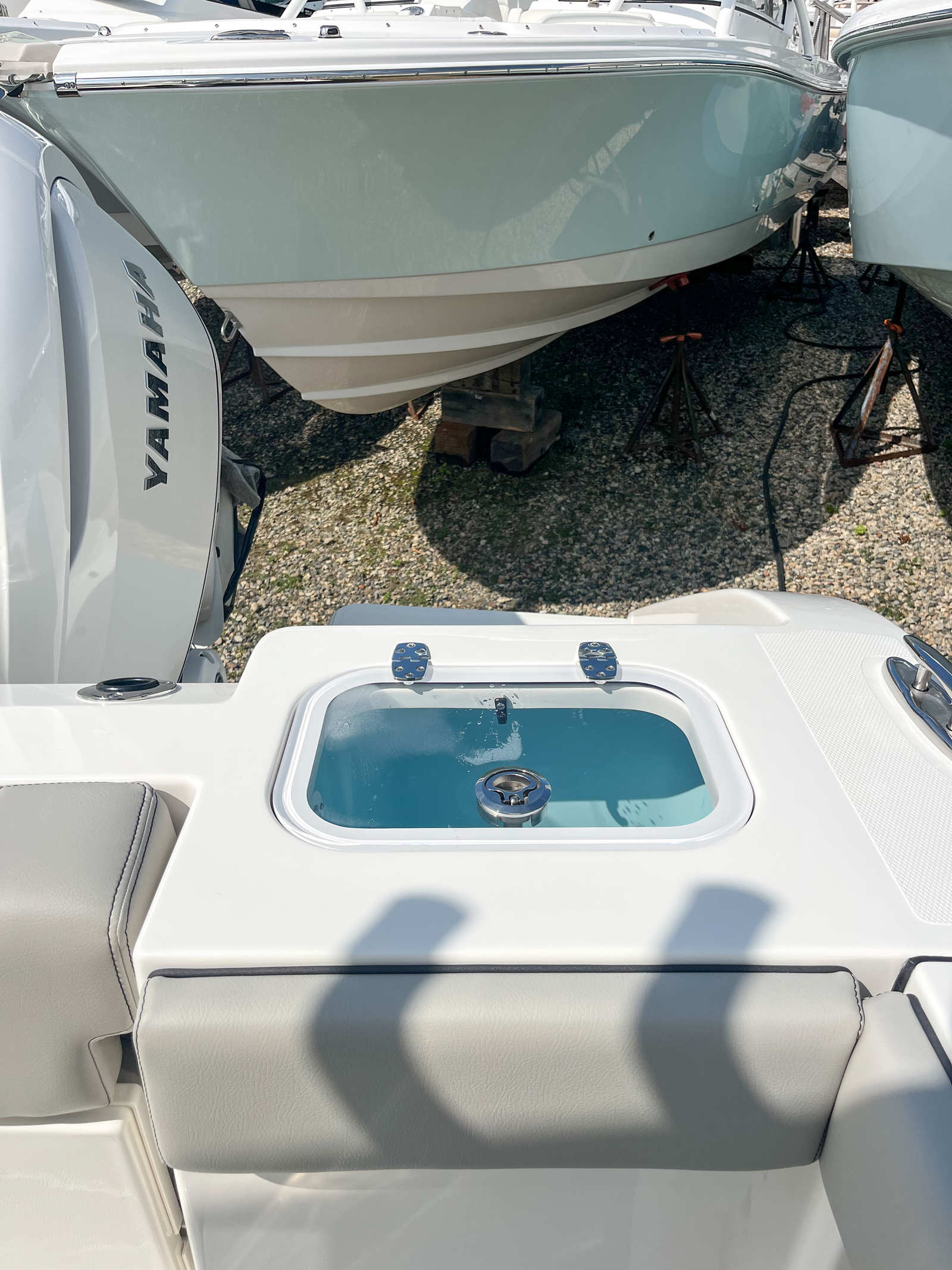The Pursuit S 248 is as practical as it is enjoyable. Its manageable size makes docking and trailering straightforward, so you can spend less time worrying about logistics and more time enjoying the water. Ample storage solutions throughout the boat keep your gear organized and out of the way, while the dedicated compartments for the bow seating filler, sun pad, and table ensure everything has its place. The efficient Yamaha F350 engine is designed for optimal fuel economy, helping you make the most of every adventure without breaking the bank.The fresh water system and cockpit shower are perfect for rinsing off after a swim or cleaning up after a day of fishing, while the electric head provides added convenience for longer outings. The LED blue accent lighting not only enhances the boat’s visual appeal but also improves visibility and safety during evening excursions.