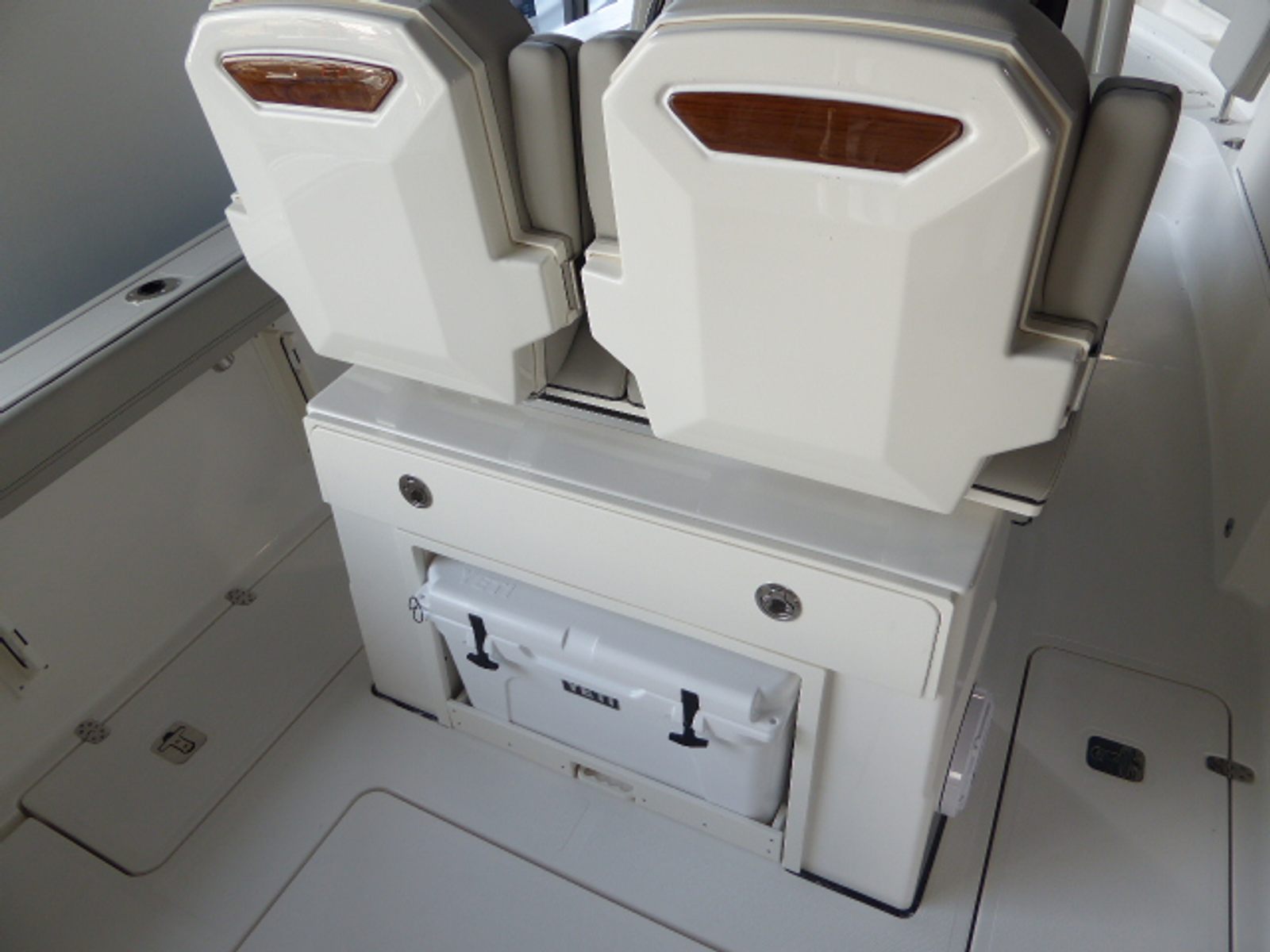 - Premium Helm Seating w/Four (4) Folding Armrests, Articulating Flip-up Bolsters, Upgraded Seat Slide with Fore/Aft Adjustments, and Edson® 316L SS Steering Wheel with Control Knob and Non-Slip Grip