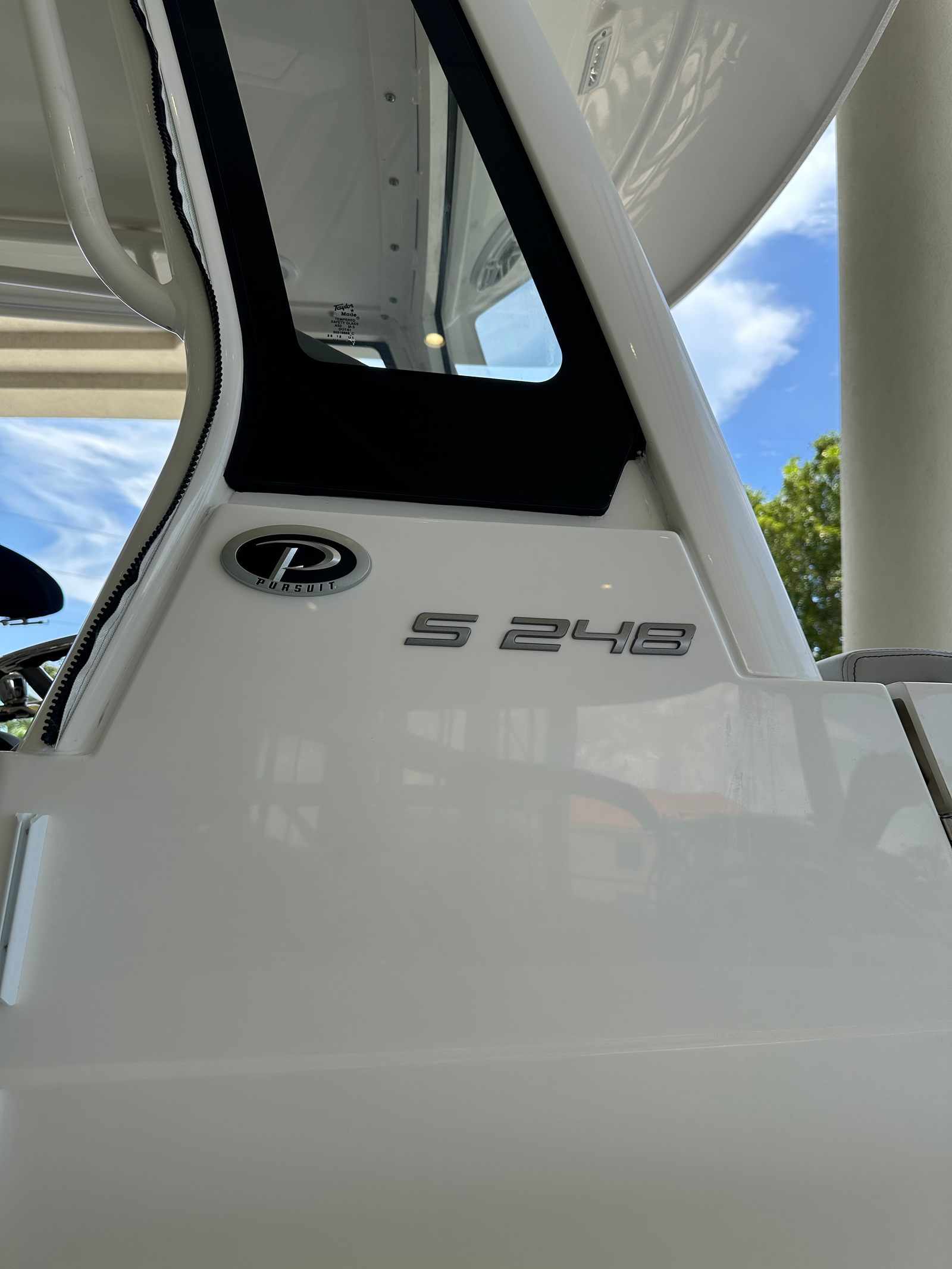 The Pursuit S 248 Center Console is loaded with features designed to enhance your time on the water. The Sea Salt exterior upholstery provides a comfortable and stylish seating arrangement, perfect for relaxing with friends and family. The deluxe beach with bow boarding ladder makes it easy to access the water for swimming or boarding from the shore, adding a new dimension of fun to your boating adventures. For effortless anchoring, the anchor windlass add-on offers convenience and safety, allowing you to secure your position with the push of a button.The upgraded electric fresh water head and holding tank bring a touch of luxury and practicality, ensuring comfort during longer outings. Mid-level accent lights and four blue LED lights create a vibrant and inviting atmosphere, perfect for evening cruises or entertaining guests after sunset. Every detail of this Pursuit boat for sale is thoughtfully designed to maximize enjoyment, safety, and convenience.