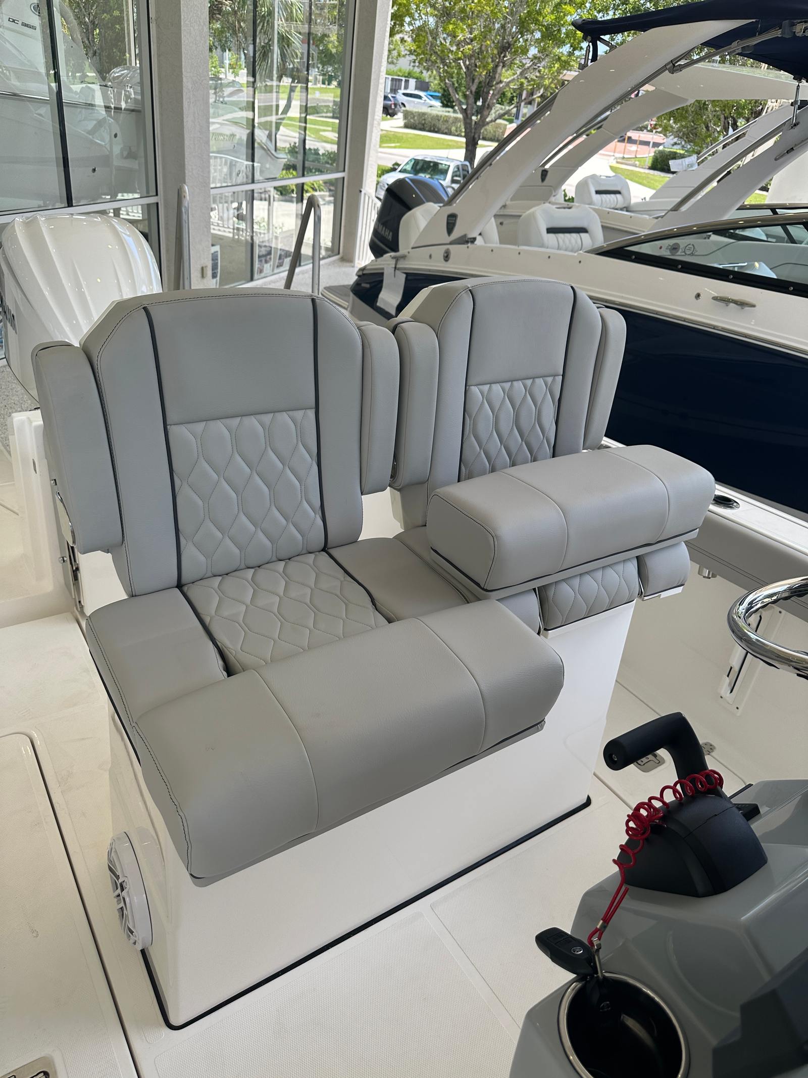 Owning the Pursuit S 248 Center Console means embracing a lifestyle of fun, relaxation, and adventure. The spacious layout and ergonomic design make it easy to move around the deck, whether you are casting a line, sunbathing, or socializing. The high-quality upholstery and finishes ensure that every passenger enjoys a comfortable ride, while the advanced lighting options set the mood for any occasion. The combination of power, style, and innovative features makes this center console boat for sale a top choice for those who value both performance and luxury.The Pursuit S 248 is also designed with socializing in mind. The open layout encourages conversation and connection, making it the perfect platform for family gatherings, celebrations, or simply enjoying a beautiful day on the water. The thoughtful inclusion of amenities like the deluxe beach with bow boarding ladder and upgraded head ensures that everyone on board can relax and enjoy themselves, no matter how long the journey.