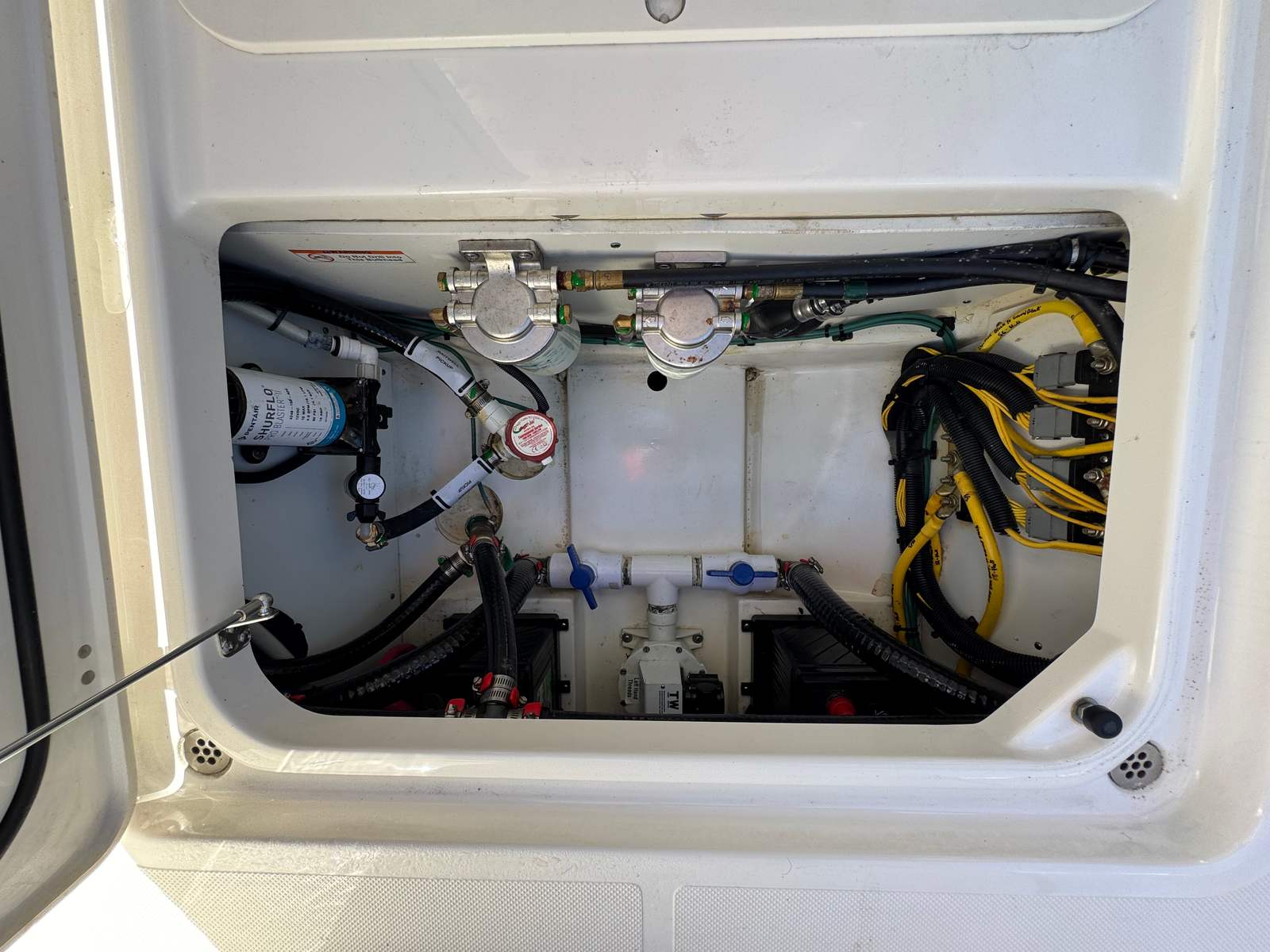- Two (2) 1500 GPH Bilge Pumps with Electronic Switches and Stainless Steel Clad Thru Hull Fittings