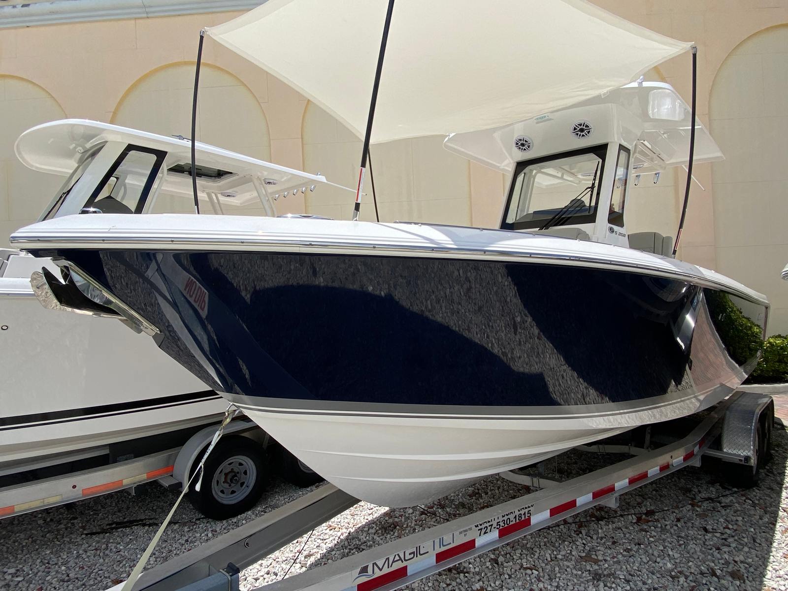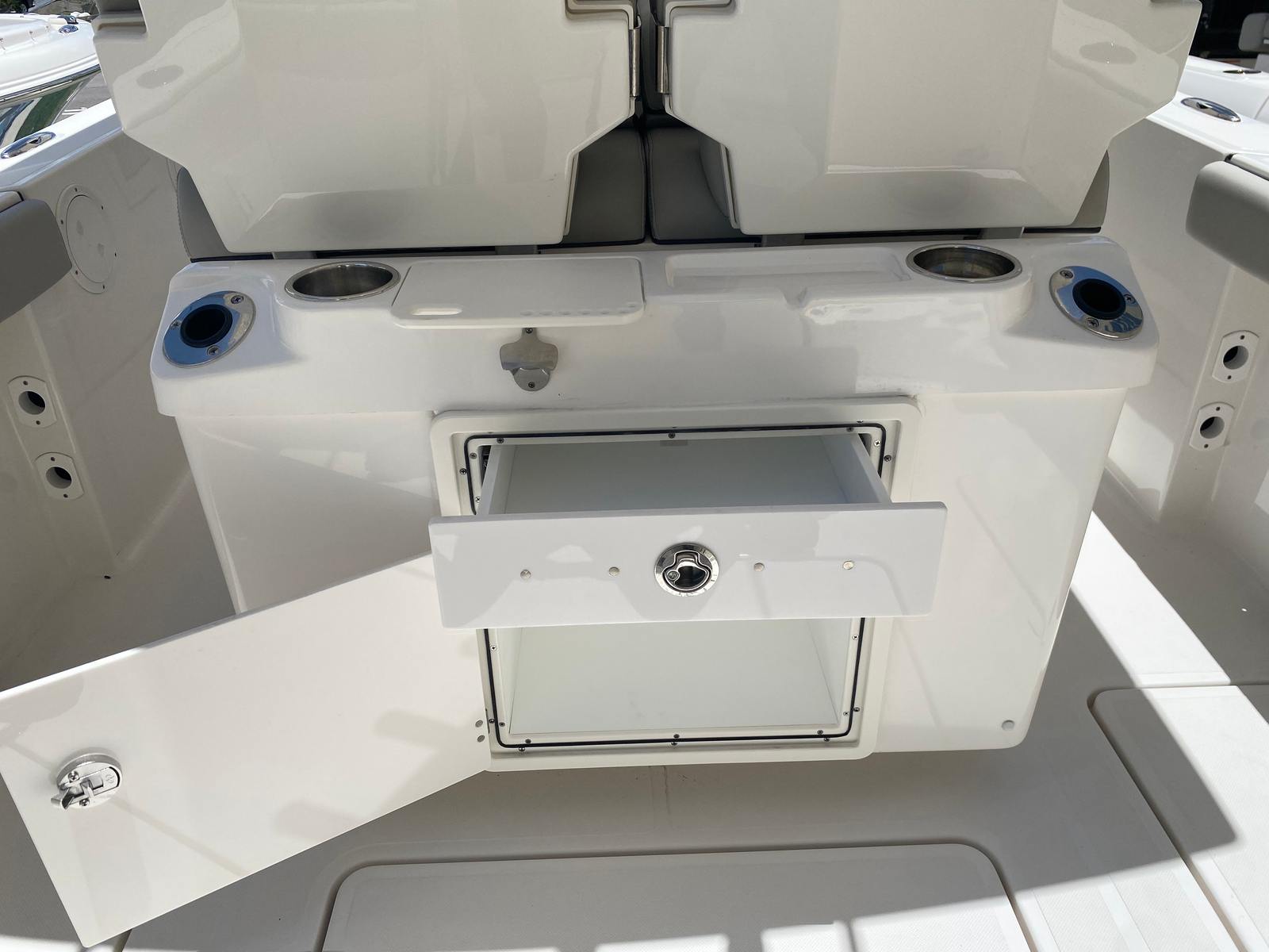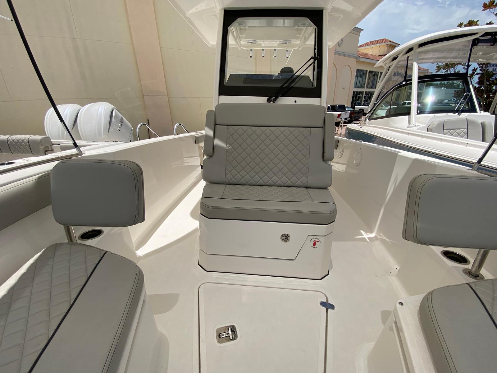 This Center Console boat for sale is as practical as it is luxurious. The windlass/anchoring system streamlines the process of securing your boat, saving time and effort during stops. The dual Garmin displays offer reliable navigation, helping you chart your course and avoid hazards with precision. The leaning post cover protects key areas from wear and tear, while the hardtop and windshield shield you from the elements.Storage solutions throughout the Pursuit S 268 make it easy to stow gear, tackle, and personal items, keeping the deck organized and clutter-free. The efficient engine setup ensures you get the most out of every gallon of fuel, making longer trips more enjoyable and cost-effective. Docking is simplified by the boat’s responsive handling, allowing you to maneuver confidently in tight spaces.