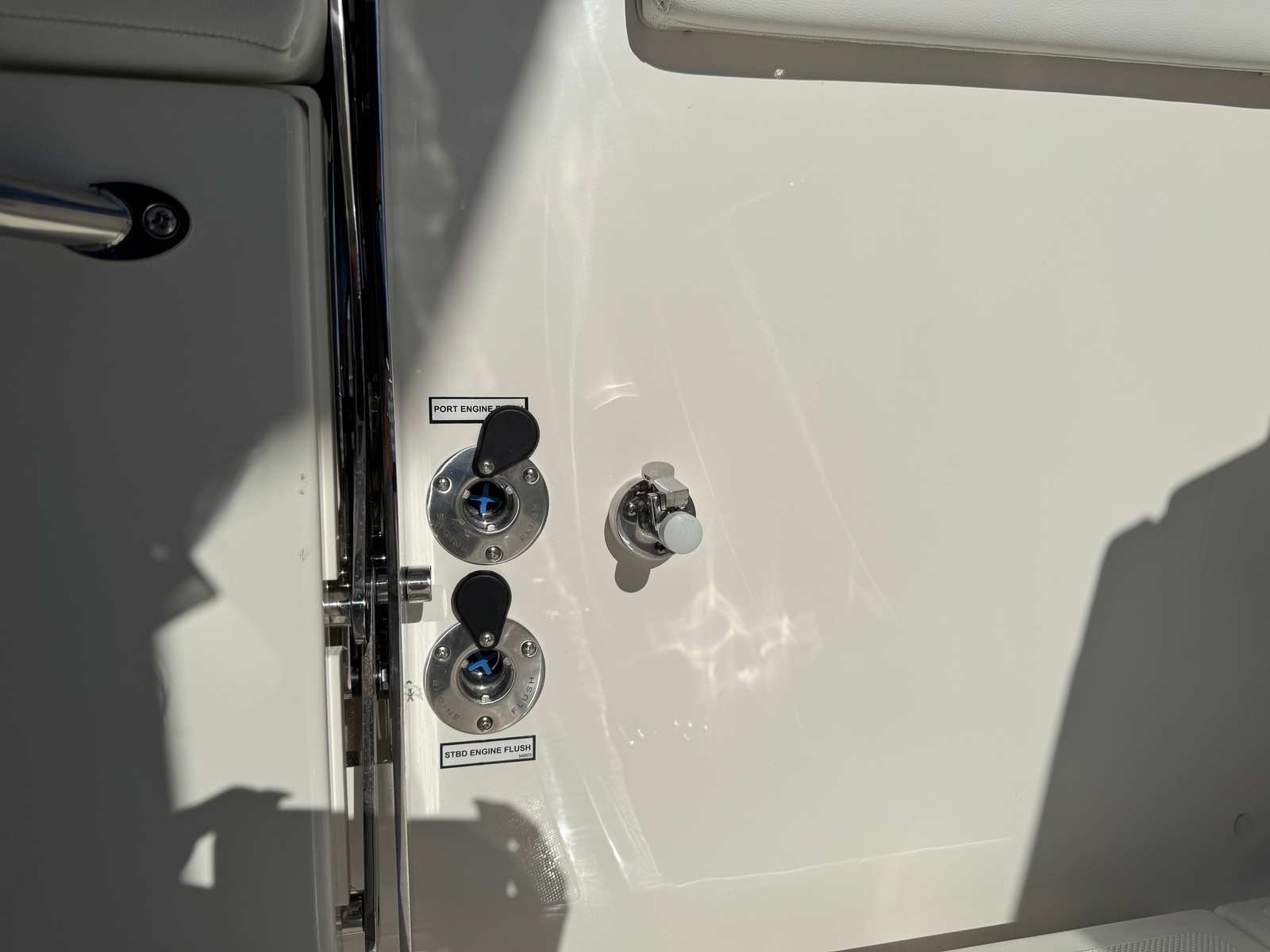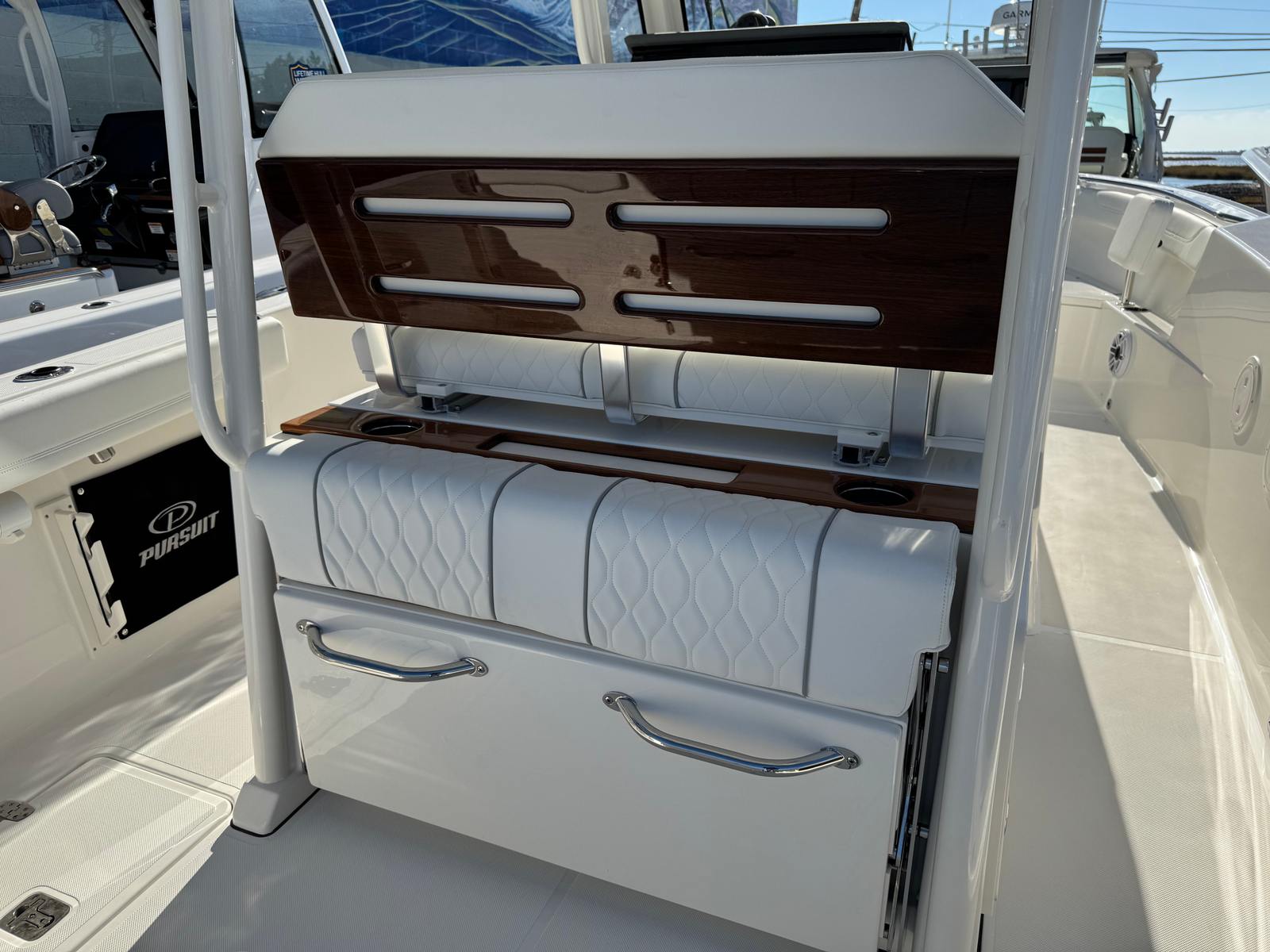 Practicality is at the core of the Pursuit S 288’s design. The manual engine flushing system simplifies maintenance, helping to extend the life of your engines and keep them running at peak performance. The dedicated storage for the fiberglass table ensures your deck remains uncluttered and ready for action, while the hardtop-mounted rod holders provide easy access to your fishing gear.The blue LED cockpit accent lights not only enhance the boat’s visual appeal but also improve visibility during nighttime activities. The pop-up ski tow at the transom is perfect for watersports enthusiasts, allowing you to quickly transition from fishing to fun on the water. With its thoughtful layout and user-friendly features, the S 288 makes every aspect of boat ownership more enjoyable and hassle-free.