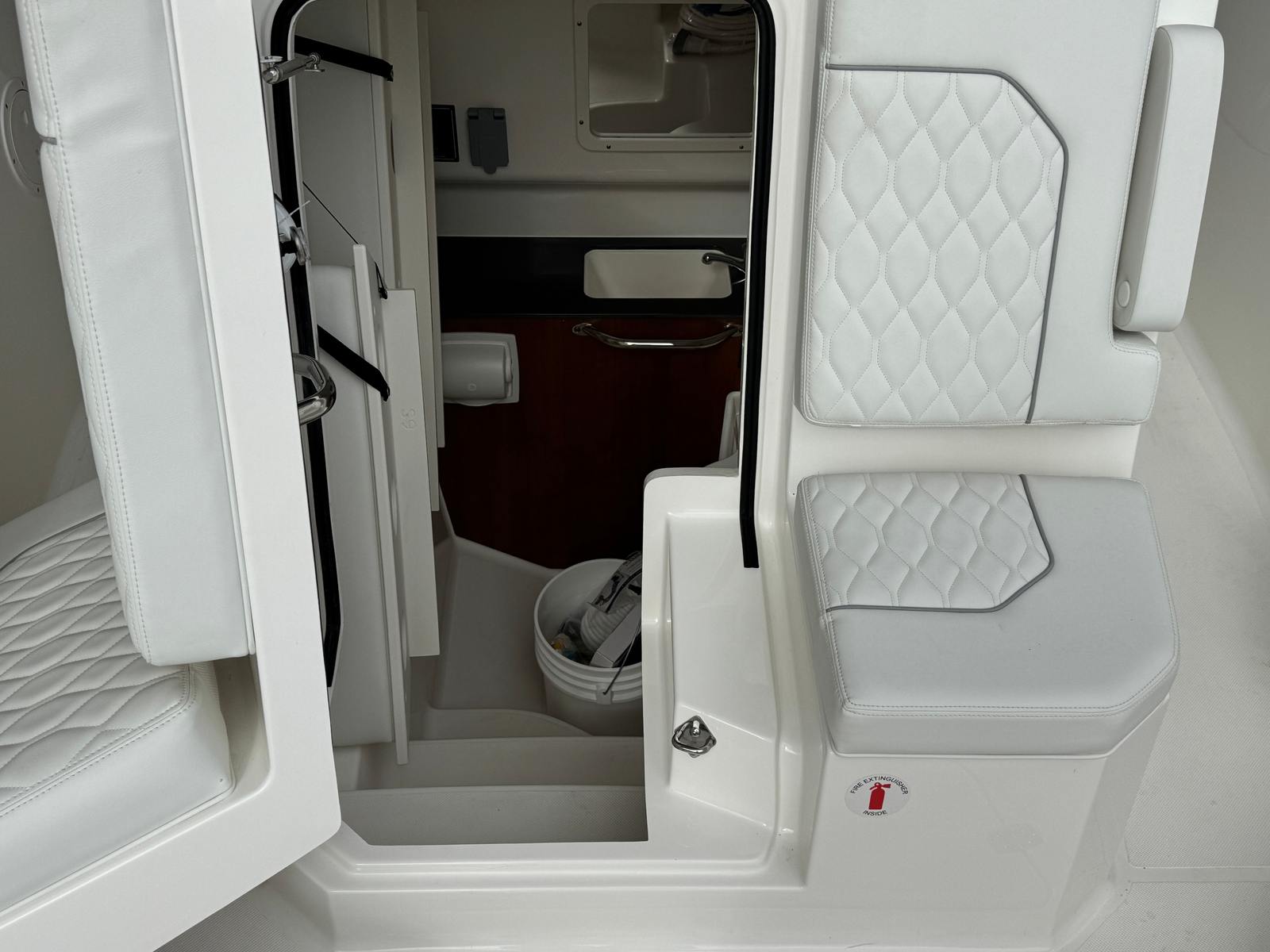 The Pursuit S 288 is as practical as it is stylish. Its 30-foot length provides ample storage for gear, supplies, and personal items, ensuring you’re always prepared for your next adventure. The integrated digital steering and joystick control make docking and maneuvering effortless, even in crowded marinas or tight spaces. Fuel efficiency is enhanced by the advanced Yamaha engines, allowing you to spend more time on the water and less time refueling. The dockside power connection supports all your electrical needs, from charging devices to powering appliances, while the manual engine flushing system simplifies maintenance and helps extend the life of your investment.