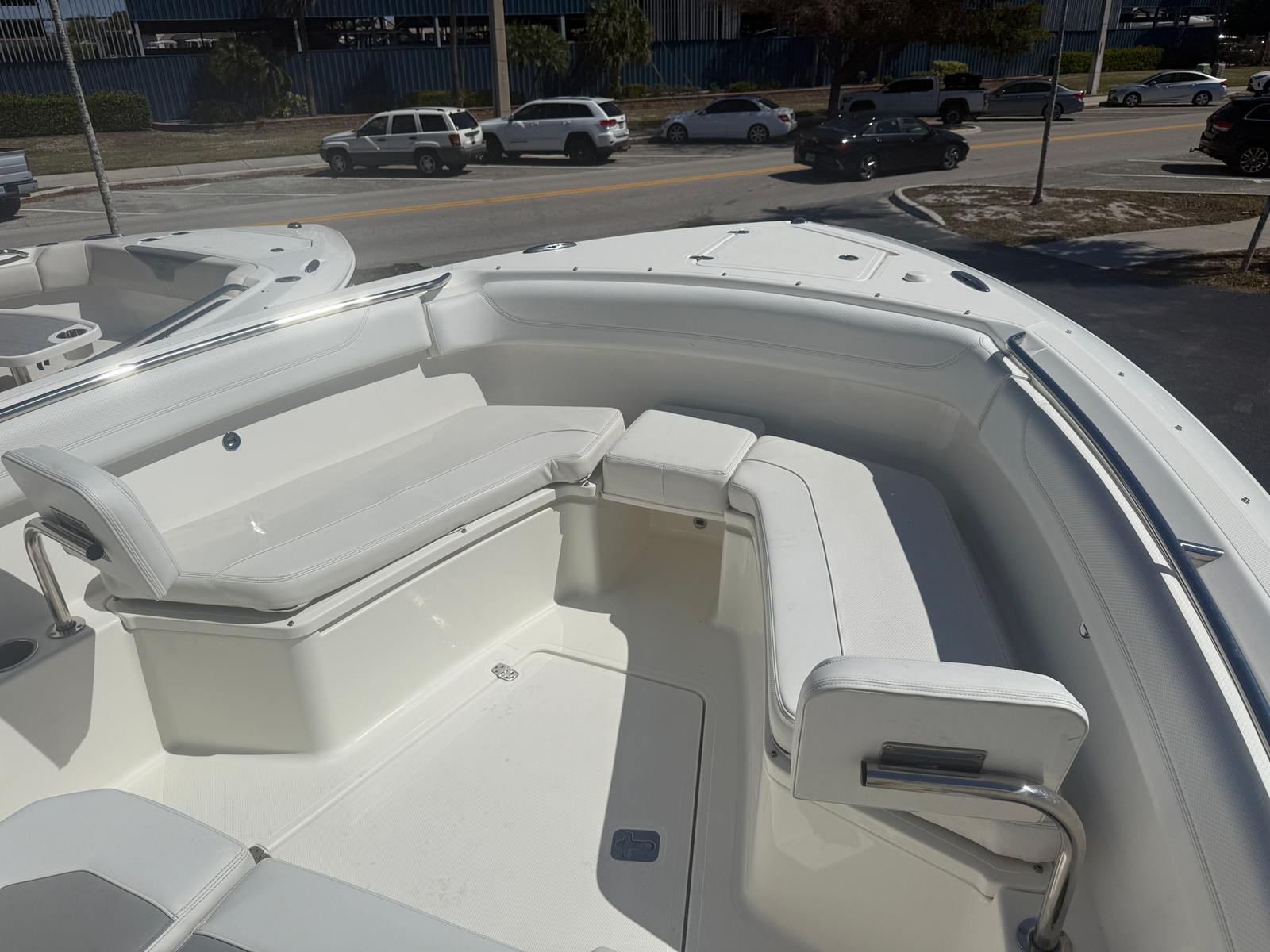 Features and Specifications: The Pursuit 288 S Center Console boat for sale is packed with features that elevate your boating experience. At 30 feet in length, it offers generous deck space for fishing, lounging, and entertaining. The Center Console layout provides unobstructed access around the boat, making it ideal for anglers who need freedom of movement and families who appreciate open, social spaces. The twin-engine configuration ensures powerful acceleration and reliable performance, while the modern helm station is designed for intuitive control and easy navigation. Every detail of the Pursuit 288 S reflects Pursuit’s commitment to quality, from its durable construction to its stylish finishes.