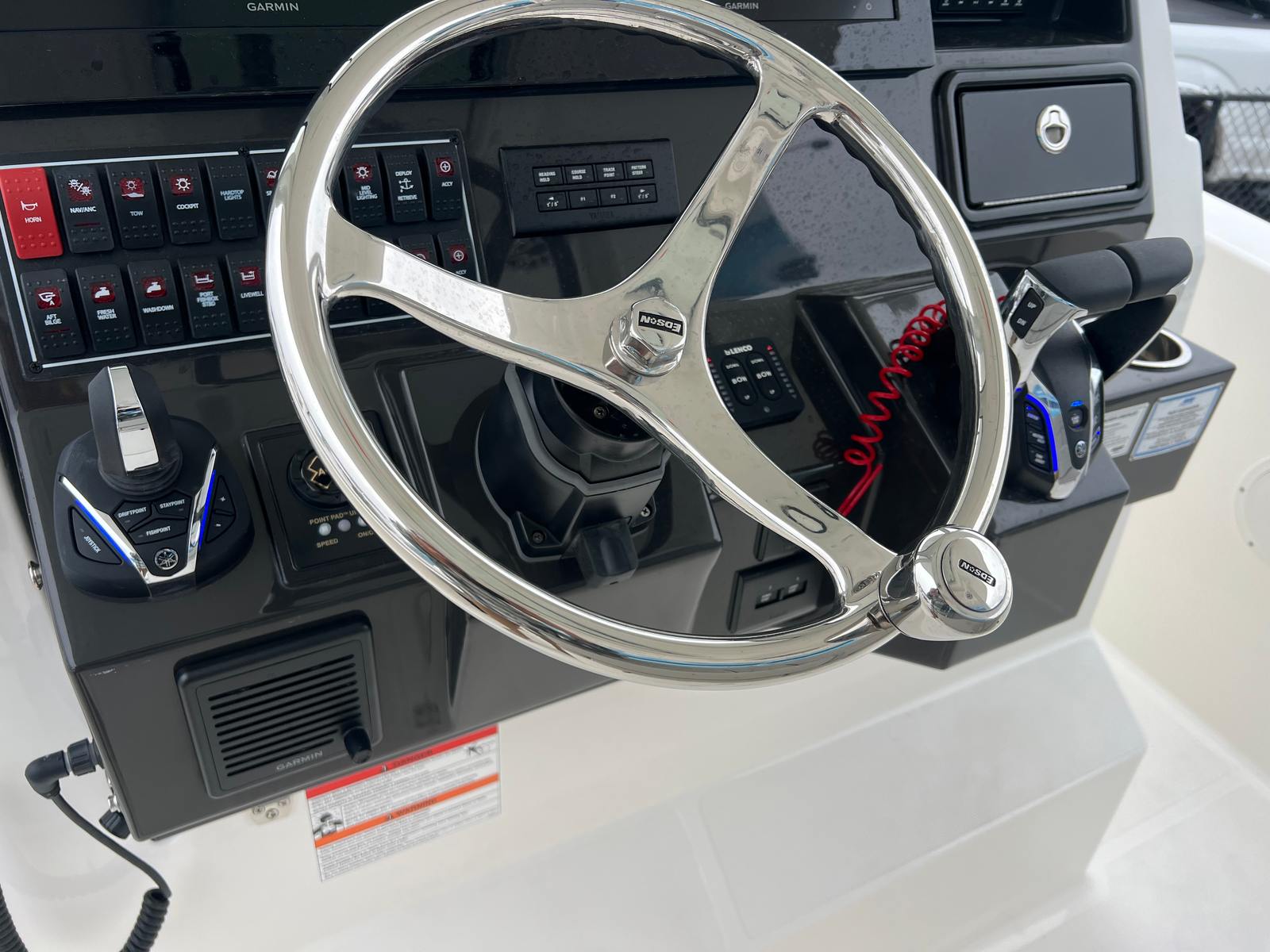 Owning the Pursuit S 288 Center Console means embracing a lifestyle of fun, relaxation, and adventure. The spacious layout accommodates family and friends with ease, making it ideal for social gatherings, sunbathing, or enjoying a meal on the water. The Mediterranean Style Sunshade and bow tonneau cover offer protection from the sun and weather, ensuring comfort during long days at sea. The advanced joystick control system simplifies maneuvering, making docking and close-quarters navigation stress-free for boaters of all experience levels.The Pursuit S 288 is designed for versatility, allowing you to switch seamlessly between fishing, cruising, and entertaining. The dedicated storage solutions keep your gear organized and accessible, while the robust engines provide the power needed for water sports, offshore fishing, or leisurely cruises. The LED spotlight enhances safety during nighttime outings, and the stylish covers protect your investment, keeping the boat looking its best season after season.