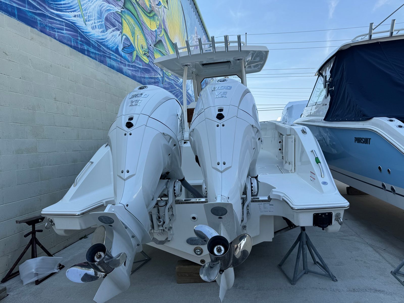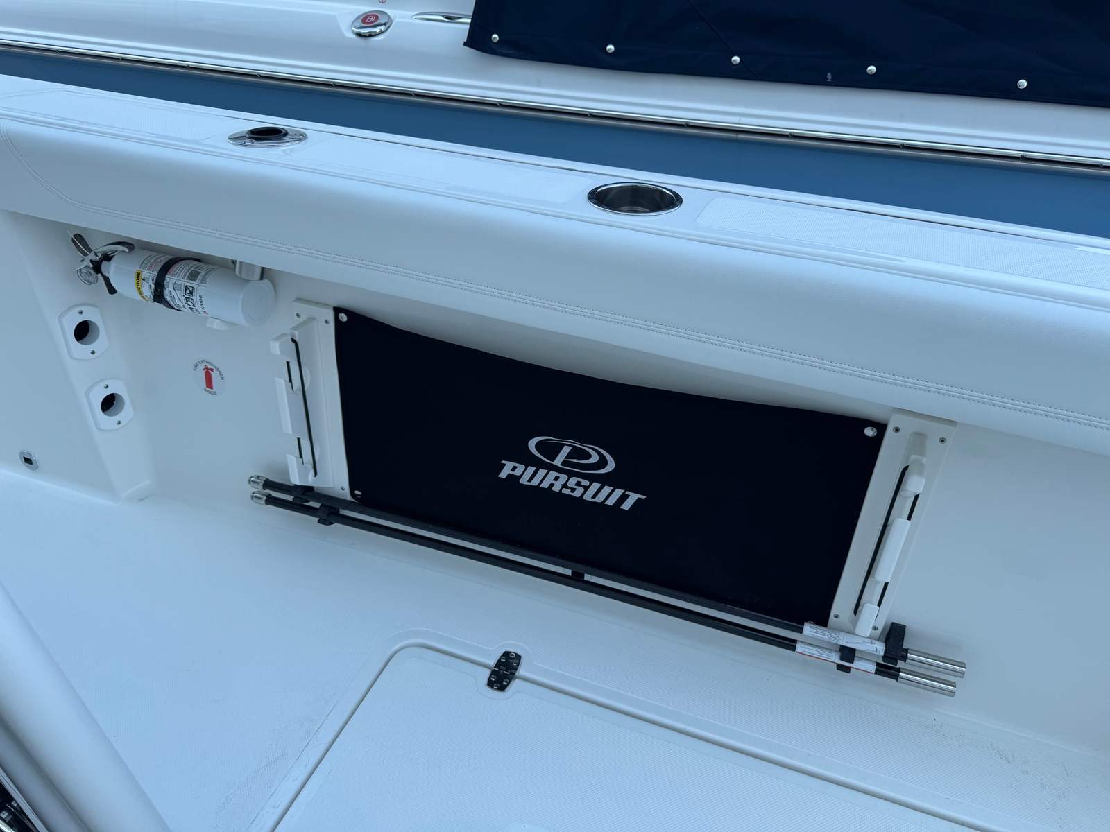 Step aboard the Pursuit S 288 and discover a world of innovative features designed to enhance your boating experience. The helm is outfitted with a GARMIN WIDESCREEN 12" DISPLAY PKG, complemented by a second GARMIN WIDESCREEN 12" DISPLAY, providing state-of-the-art navigation and system monitoring at your fingertips. The helm itself boasts a striking Flag Blue finish, while protective Blue Helm Seat and Instrument Covers keep your controls looking pristine.Comfort and style are evident throughout the boat, with a Blue Bow Tonnean Cover offering shade and protection for the forward seating area. The hardtop liner in fresh white adds a touch of elegance and ensures a cool, comfortable environment even on the sunniest days. Entertain guests with the versatile Bow/Cockpit Table, crafted from durable fiberglass and featuring dedicated storage for convenience. For those seeking relaxation, the Bow Mediterranean Style Sunshade is easily stowable, providing a luxurious retreat from the midday sun.