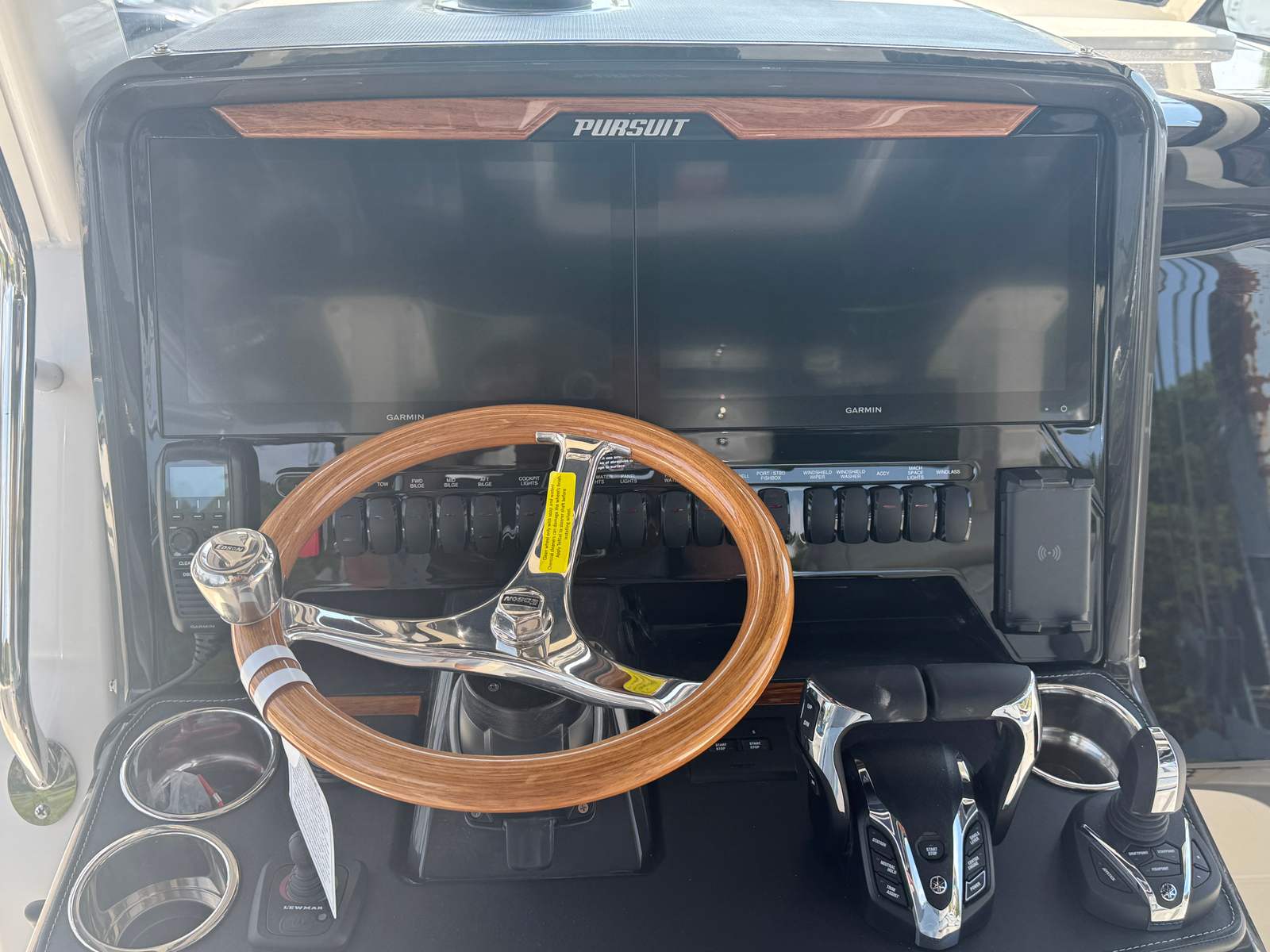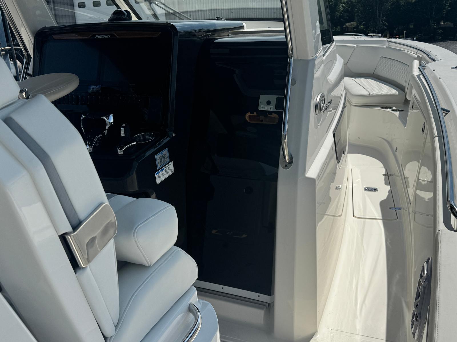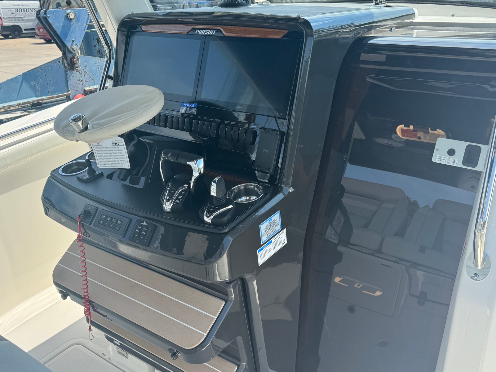 The Pursuit S 328 Center Console shines in a variety of scenarios, making it a versatile choice for any boating enthusiast. It’s perfect for family outings, offering plenty of seating and amenities for a day of fun on the water. Anglers will appreciate the fishing-friendly features and offshore capability, while those seeking luxury and relaxation will love the stylish finishes and comfortable layout.Imagine spending a sunny afternoon cruising along the coastline, enjoying the breeze under the custom retractable sunshade. Host a weekend getaway with friends, exploring hidden coves and enjoying the spacious deck. Take advantage of the boat’s advanced navigation and control systems for stress-free docking and maneuvering, making every trip enjoyable from start to finish. Whether you’re planning a fishing expedition, a family adventure, or a relaxing escape, the Pursuit S 328 is ready to deliver unforgettable experiences.