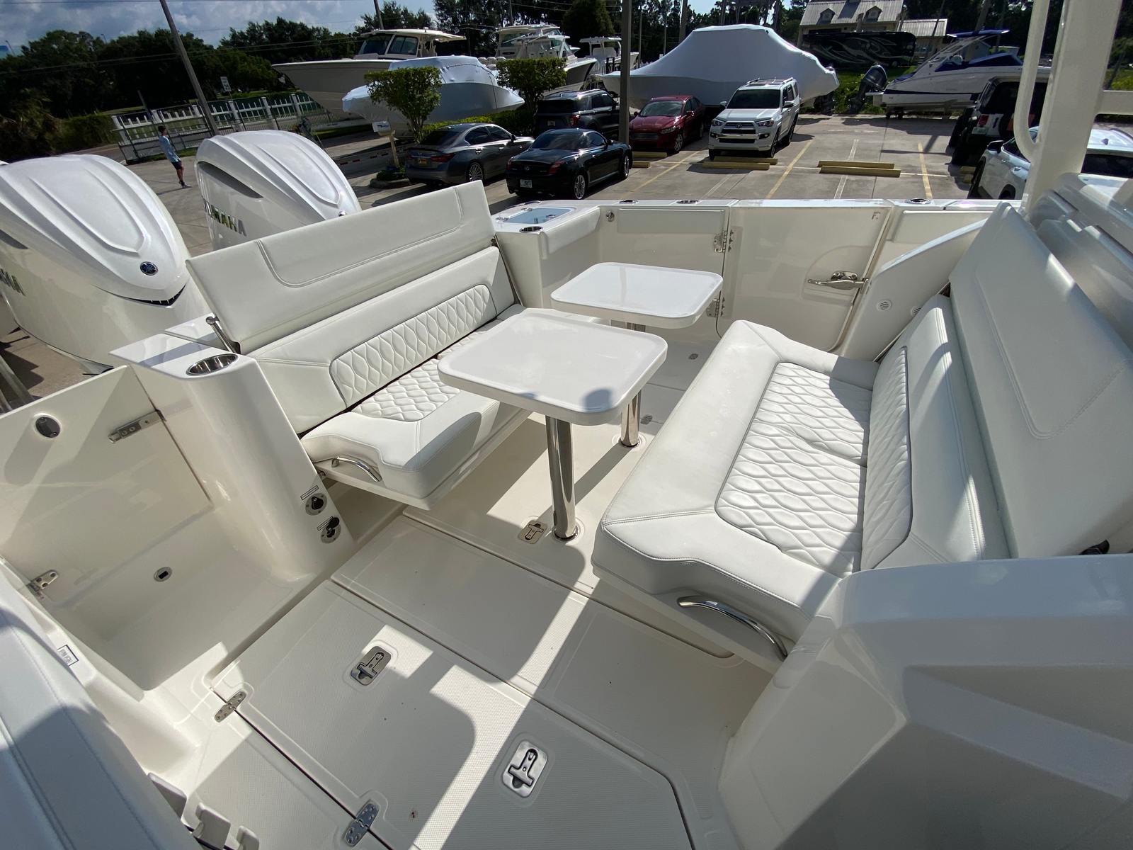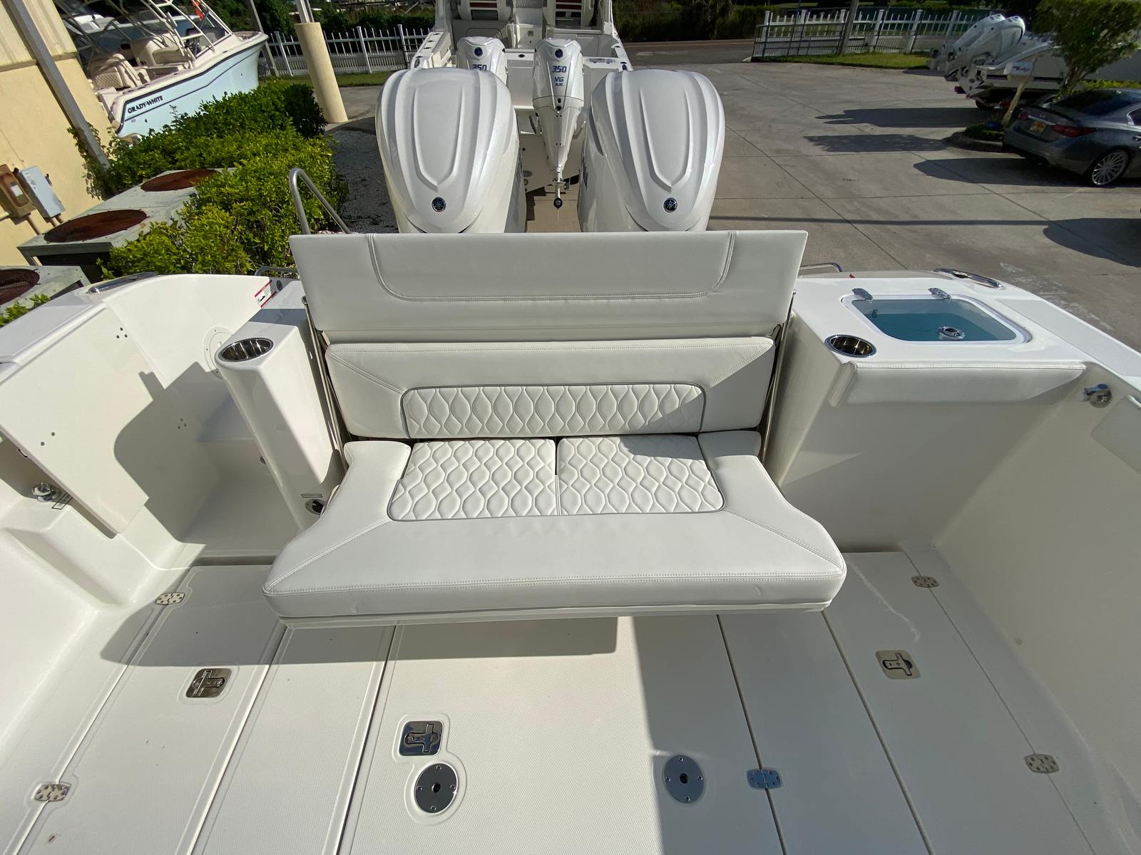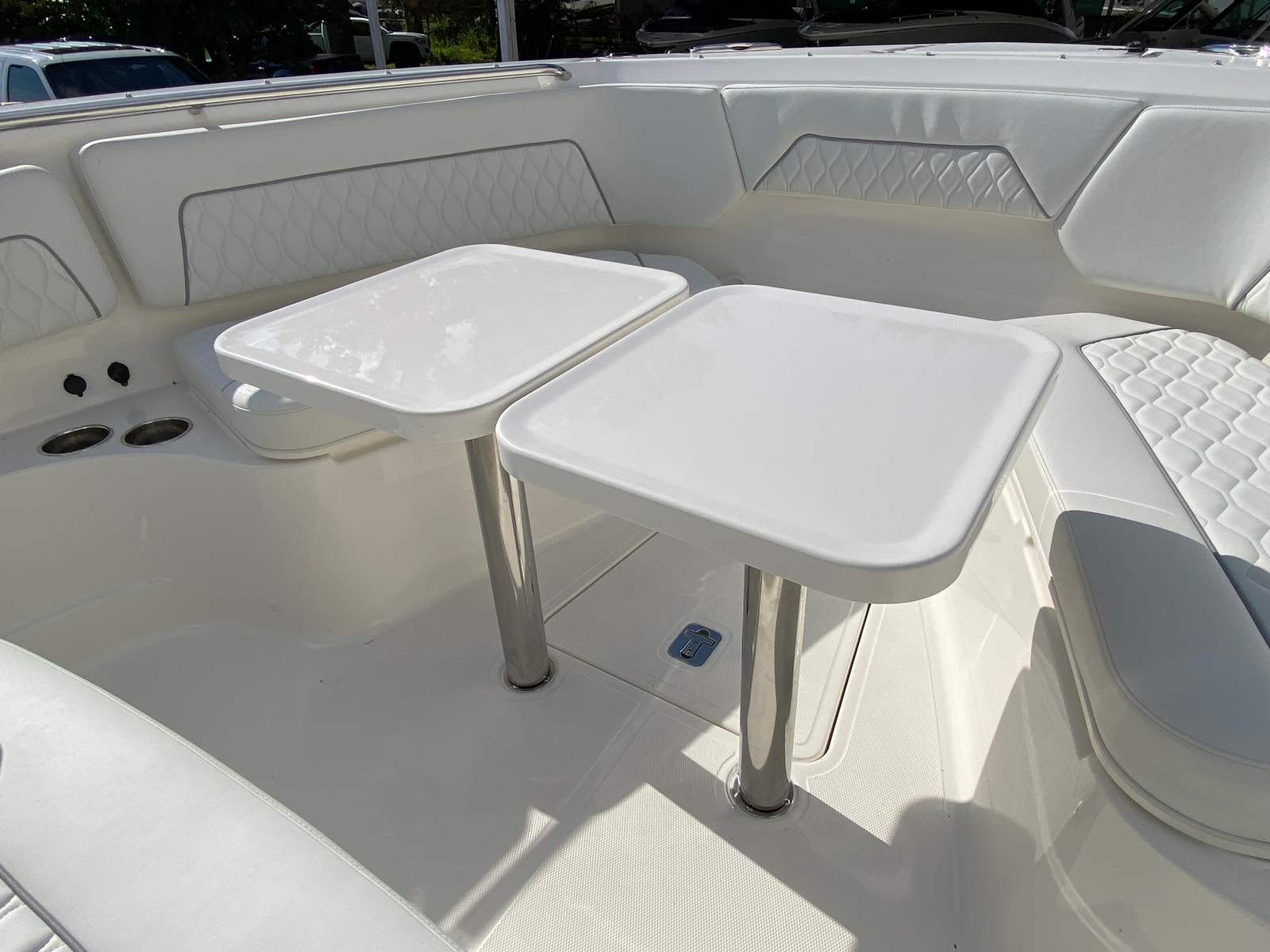 The Pursuit S 328 is designed with practicality in mind, making ownership easy and enjoyable. The joystick control system simplifies docking, allowing you to maneuver effortlessly in tight spaces or busy marinas. The ample rod holders and spacious cockpit make it a dream for anglers, while the refrigerator and air conditioning add comfort for longer trips. The generator ensures you have reliable power for overnight stays or extended outings, and the retractable sunshade provides customizable protection from the elements.Storage solutions throughout the boat keep your gear organized and accessible, while the robust twin Yamaha engines offer excellent fuel efficiency for a vessel of this size and power. The Pursuit S 328’s thoughtful design means you can spend more time enjoying the water and less time worrying about logistics.