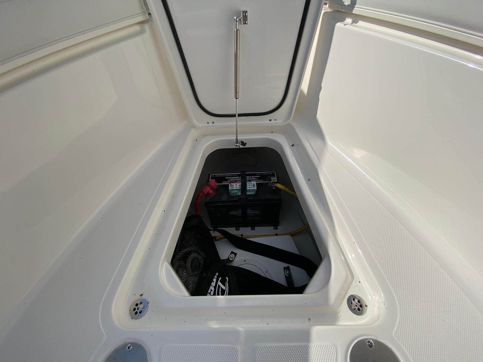 This Center Console boat for sale is packed with premium features that elevate your boating experience. The Hardtop Underside Color in Arctic Blue adds a touch of sophistication, while the Helm Color in Carbon provides a modern, high-tech aesthetic. Enjoy year-round comfort with the 110v/60Hz Cabin Air Conditioning featuring Reverse Cycle (6,000 BTU), ensuring a pleasant environment no matter the weather. Anglers will appreciate the Bow Rod Holders (4) and Hardtop Mounted Rod Holders (6), offering ample storage for your fishing gear and keeping everything within easy reach.For those who love entertaining, the Cockpit Refrigerator (12v with Temp Control) replaces the standard tackle storage, providing a convenient space to keep refreshments chilled. The Custom Retractable Makefast Sunshade with One Touch Operation lets you create the perfect amount of shade with ease, enhancing comfort during sunny days. The onboard Generator (120V/60Hz, 5.0kW Fischer Panda Genset with 16 GAL Diesel Tank) ensures you have reliable power for all your amenities, including a GFI outlet for added convenience.