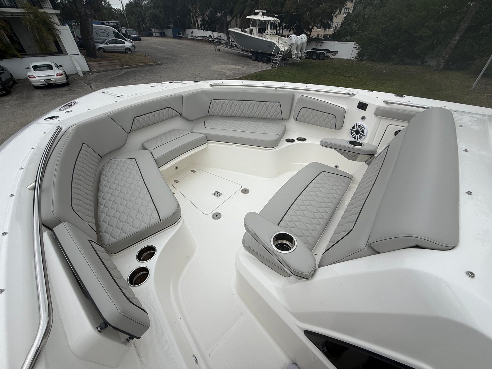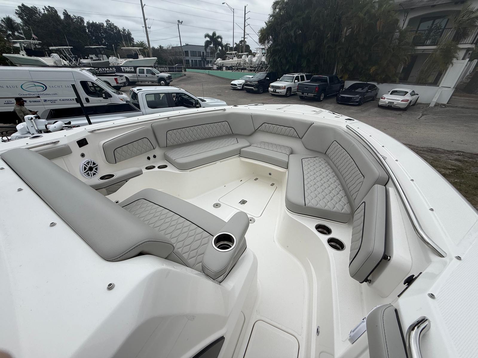 Power and precision define the Pursuit S 328’s performance. Equipped with twin Yamaha Pearlescent White F350USA2 engines, this Center Console boat delivers a combined 700 horsepower, ensuring exhilarating speed and responsive handling in any conditions. The Helm Master Full Maneuverability system provides intuitive control, making docking, navigating tight spaces, and handling open water effortless and enjoyable. Whether you’re chasing the horizon or cruising along the coastline, the S 328 offers a smooth, stable ride that inspires confidence and excitement.