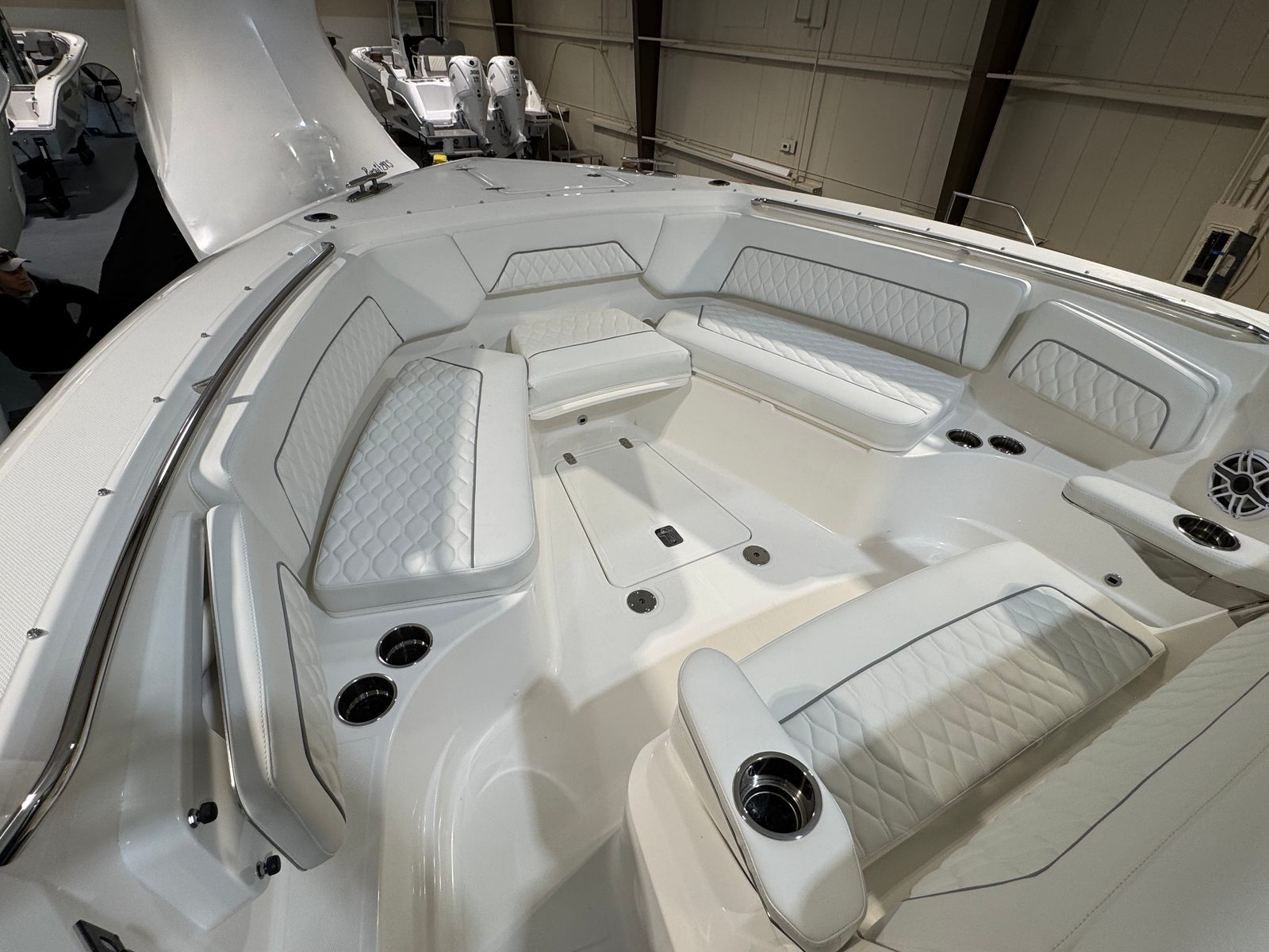 The Pursuit S 328 is as practical as it is stylish. The joystick control simplifies docking, making it easy to maneuver in marinas or tight slips. The efficient twin Yamaha F350 engines offer impressive performance without compromising on fuel economy, allowing you to spend more time on the water and less time refueling. The cockpit drawer 12V refrigerator adds a touch of convenience, ensuring your snacks and beverages are always within reach. The boat’s thoughtful layout provides plenty of storage for gear, water toys, and personal items, keeping the deck clutter-free and organized. The durable materials and high-quality finishes are designed to withstand the rigors of marine life, ensuring your investment remains in top condition for years to come.