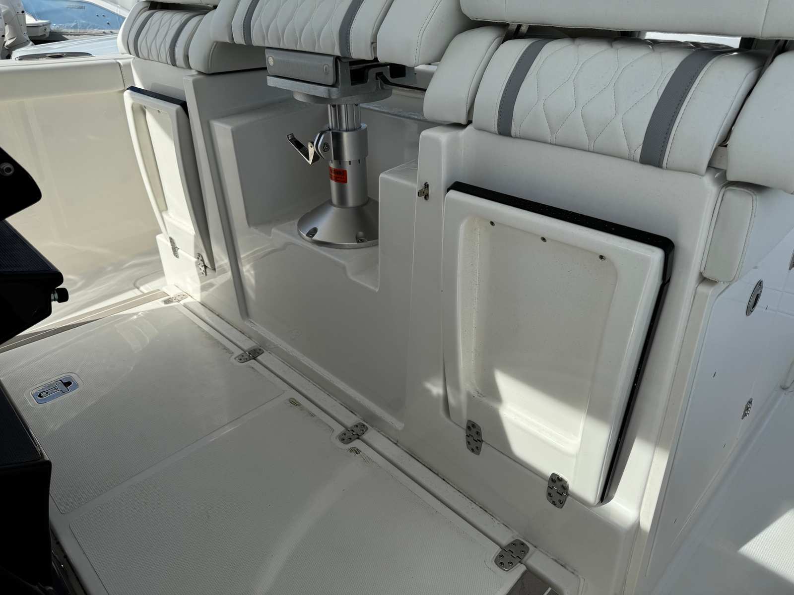 Practicality is at the core of the Pursuit S 358’s design. The manual engine flushing system simplifies maintenance, helping to extend the life of your engines and keep them running smoothly. The generator provides reliable power for all your onboard systems, so you can enjoy extended trips without worry. The hardtop-mounted rod holders and outriggers make it easy to switch from cruising to fishing at a moment’s notice, while the spacious deck offers plenty of storage for gear and supplies.Docking and maneuvering are effortless, thanks to the Yamaha Joystick Control and Helm Master EX system, which provide precise handling in tight spaces. The SeaKeeper 2 Gyro Stabilizer minimizes roll and keeps the boat steady, enhancing comfort for everyone onboard. With its combination of advanced features and user-friendly design, the S 358 is as practical as it is luxurious.