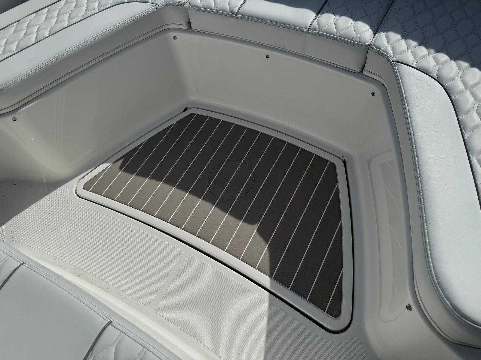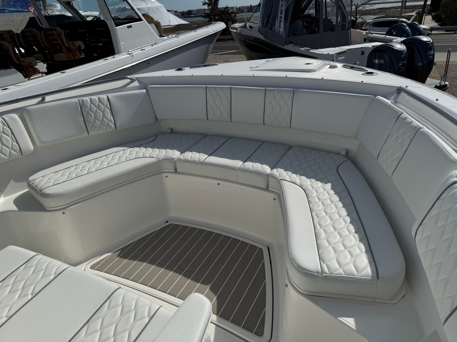 At the heart of the Pursuit S 358 is a powerhouse of performance, thanks to its twin Yamaha Digital 450 XTO engines in a stunning pearlescent white finish. With a combined 900 horsepower, this center console boat is engineered for speed, agility, and smooth handling in a variety of conditions. The integrated electric steering (DES) ensures precise control, while the Helm Master EX Digital Electronic Control (DEC) and Yamaha Joystick Control provide full maneuverability, including advanced features like Set Point and Autopilot. Whether you are navigating tight marinas or cruising open waters, the S 358 offers a responsive and exhilarating ride that will thrill even the most experienced boaters.