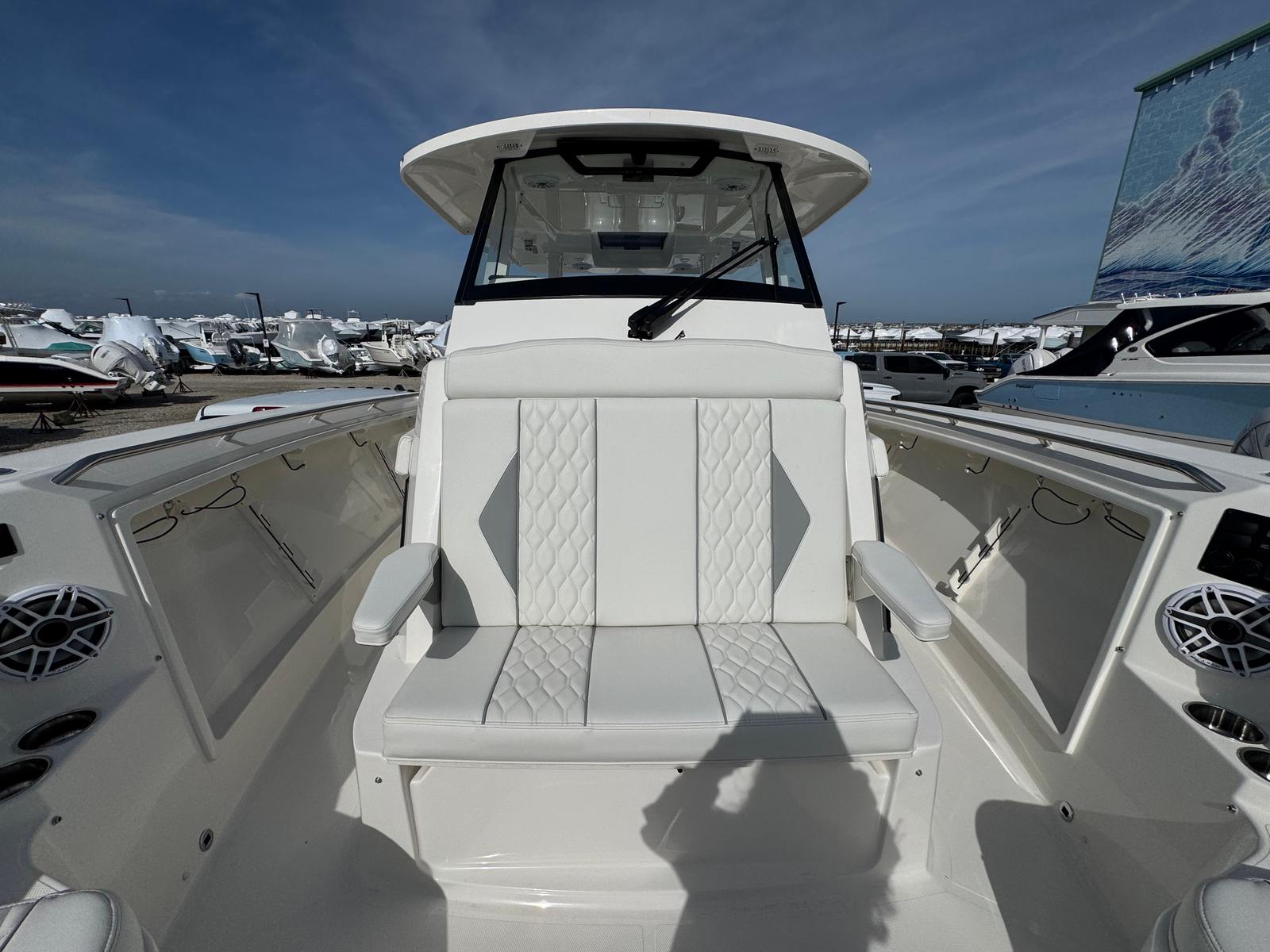 The 2026 Pursuit S 358 is a brand-new center console boat, measuring an impressive 37.33 feet in length. This vessel is expertly crafted to provide ample space for entertaining, fishing, and relaxing, making it the perfect choice for families, anglers, and adventure seekers alike. The fresh white hull, accented by a sleek black bootstripe and a carbon helm, gives the S 358 a modern, eye-catching appearance that commands attention at every marina and on every waterway.