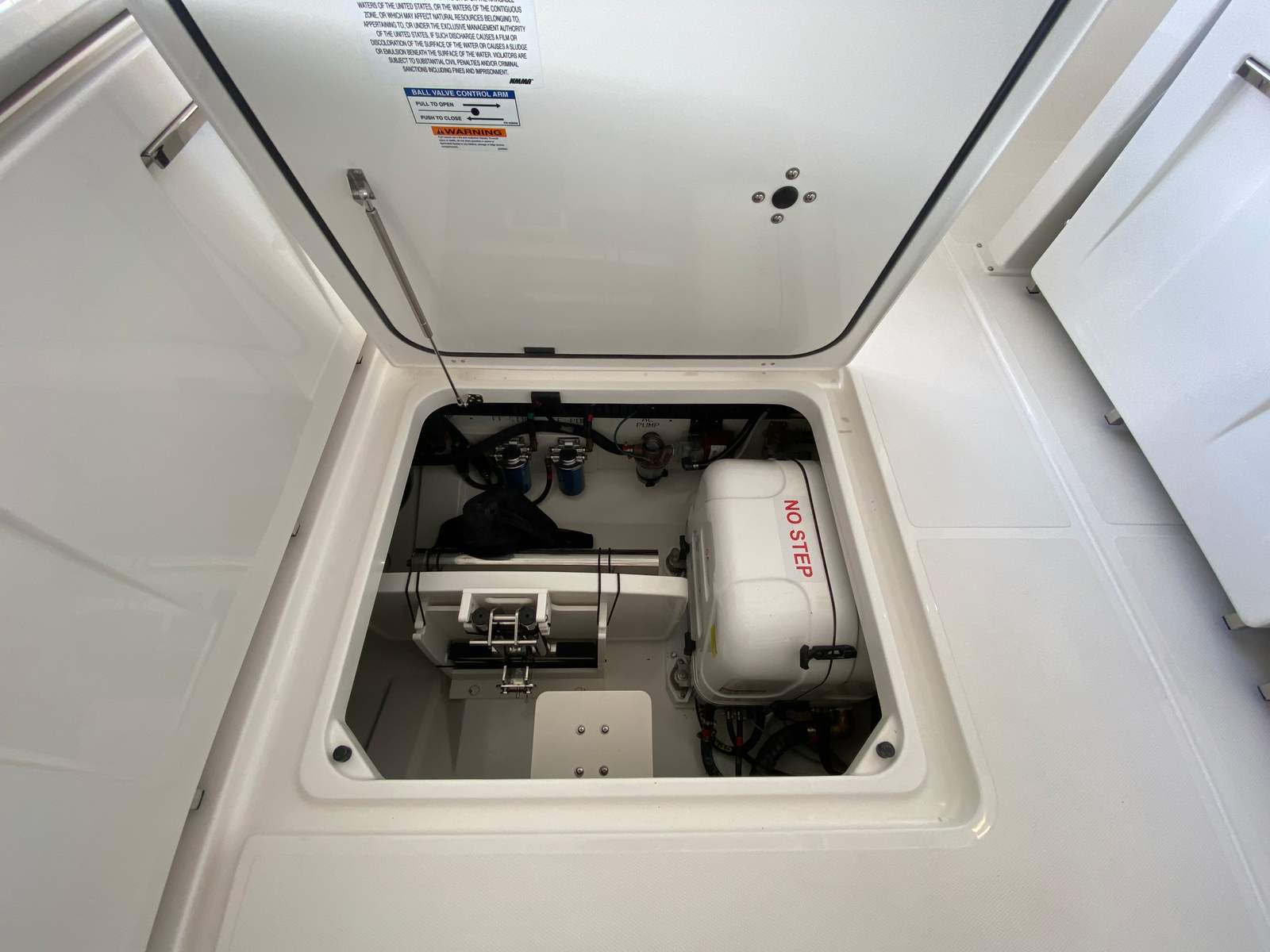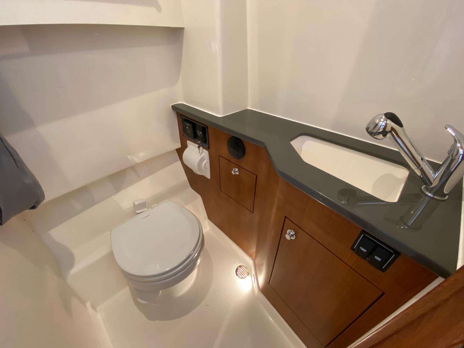 - Generator 120V/60Hz (5.0kW Fischer Panda Genset (16 gal diesel tank), Includes one GFI Outlet and 0.7 cu. Ft. Microwave (replaces upper storage in cabin)