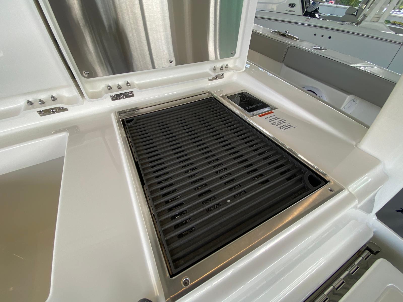 The Pursuit S 358 Center Console is loaded with premium features designed to elevate your boating experience. The hull’s fresh white color and platinum bootstripe offer a striking visual presence on the water, while the carbon helm and tranquil sea interior fabric create a modern, relaxing environment for both captain and guests. Comfort is paramount, with 110v/60Hz cabin air conditioning featuring reverse cycle technology (6,000 BTU) to keep the interior cool and inviting, regardless of the weather outside. The cockpit is equally well-appointed, boasting a powerful 16,000 BTU air conditioning system for those warm summer days.For sun lovers, the bow Mediterranean style sunshade is easily stowable, providing flexible protection from the elements when needed. The custom hardtop features an integrated stainless steel retractable Makefast sunshade with one-touch operation, offering effortless shade at the touch of a button. The 5.0kW Fischer Panda generator (with a 16-gallon diesel tank) ensures you have reliable power for all your onboard systems, while the included GFI outlet and 0.7 cu. ft. microwave (replacing upper storage in the cabin) add convenience for extended trips or entertaining guests.