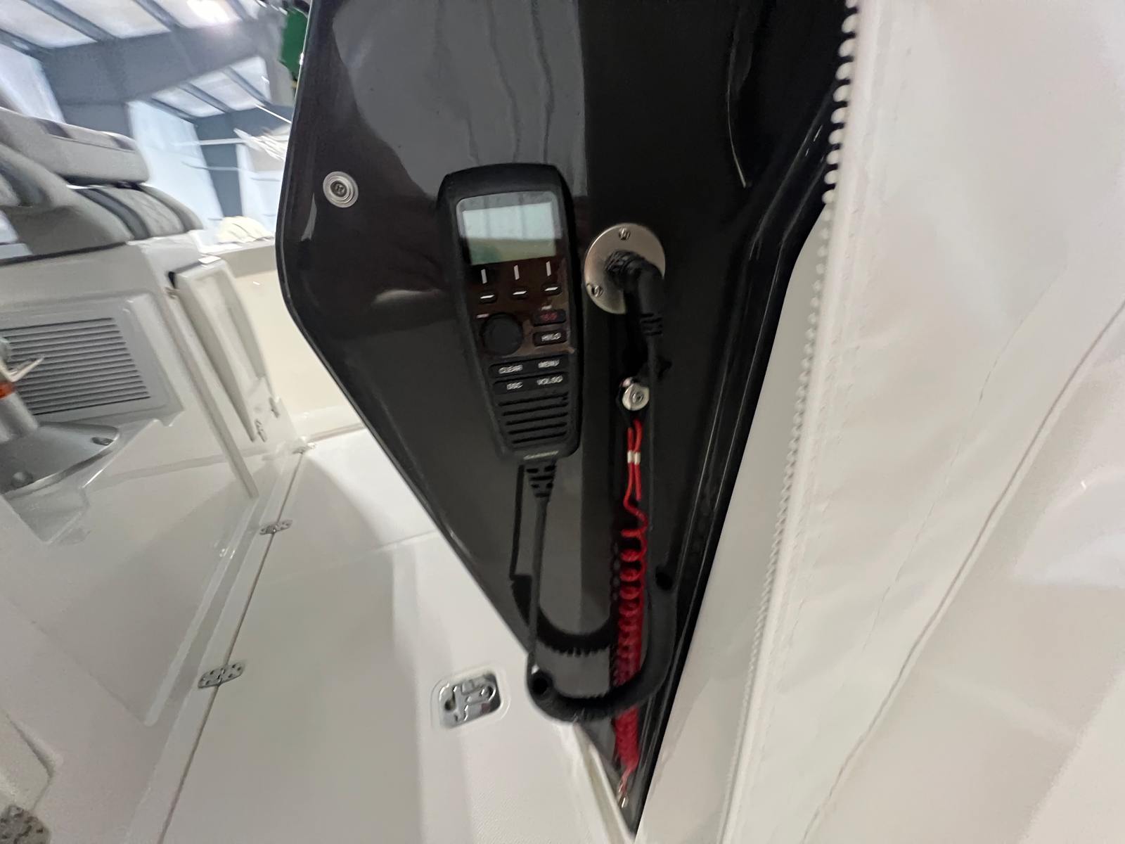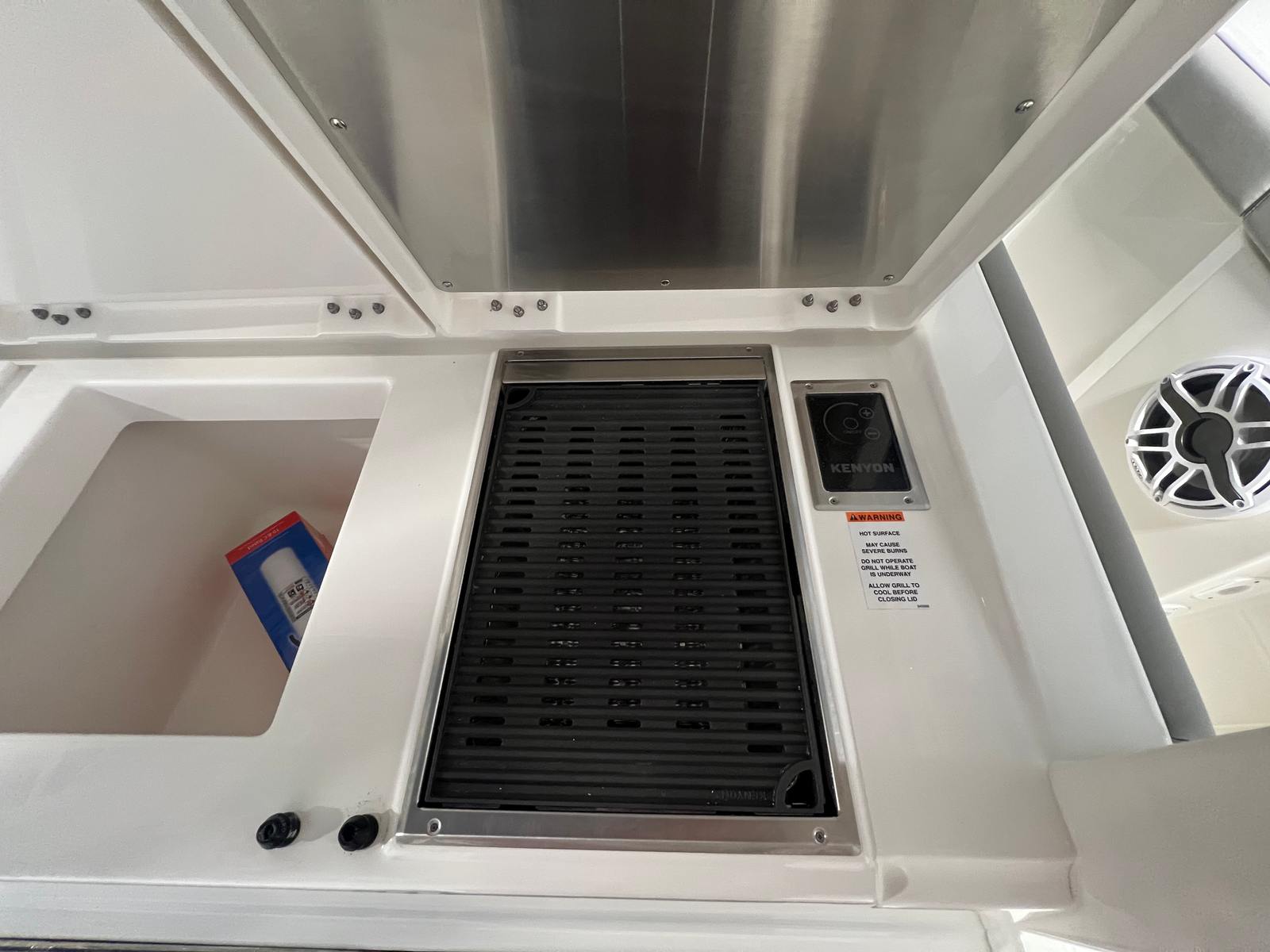 The Pursuit 358 S is loaded with premium features designed to enhance your boating experience. Enjoy year-round comfort with both 110v/60Hz cabin air conditioning with reverse cycle (6,000 BTU) and 110V/60Hz cockpit air conditioning with reverse cycle (16,000 BTU), ensuring a pleasant environment whether you’re relaxing inside or entertaining guests in the cockpit. The three-sided enclosure, crafted from white Stamoid and polycarbonate windows, offers protection from the elements while maintaining clear visibility and an open feel.For those who demand the latest in marine electronics, the Pursuit 358 S includes a Garmin widescreen 16" display package, a second Garmin widescreen 16" display, and an add GMS 10 expander for Garmin OPTS, providing seamless navigation, fish finding, and system monitoring. The custom hardtop features integrated stainless steel retractable Makefast sunshade with one-touch operation, allowing you to easily adjust your shade and comfort level throughout the day.Anglers will appreciate the hardtop-mounted rod holders (6), offering convenient storage and quick access to your fishing gear. The onboard generator (120V/60Hz, 5.0kw Fischer Panda genset with a 16-gallon diesel tank) ensures you have reliable power for all your onboard systems, including a GFI outlet and a 0.7 cu. ft. microwave, which replaces the upper storage in the cabin for added convenience.