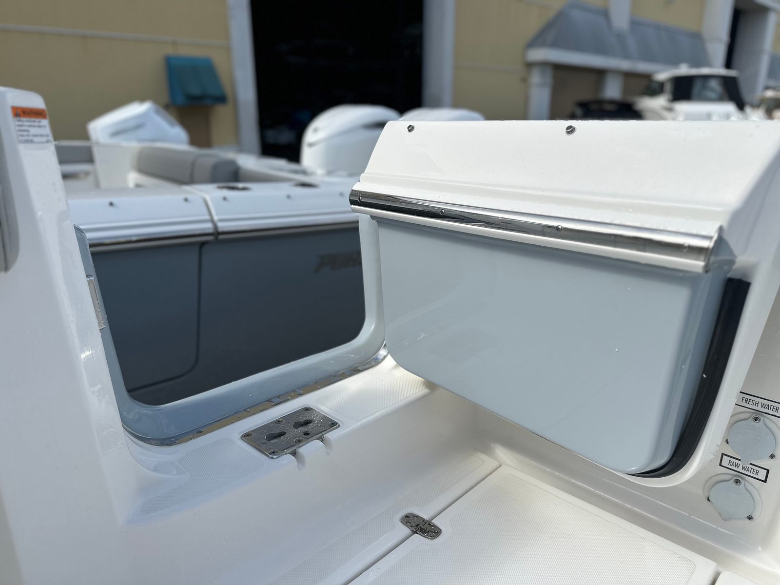 The 2025 Pursuit S 378 is loaded with premium features that elevate your time on the water. The Garmin GC Aft Facing Camera provides enhanced visibility and safety, making docking and maneuvering easier than ever. The Coastal Sunrise Interior Package adds a touch of elegance and comfort, creating a welcoming atmosphere for you and your guests. The Machinery Hatch Composite Decking in Smoke not only looks sophisticated but also offers durability and easy maintenance.For those who love to fish, the Bolt-On Hardtop Rod Holders are a practical addition, keeping your gear organized and within reach. The Helm Control Hardtop Mounted LED Spotlight ensures excellent visibility during nighttime excursions, while the Cadet Gray Aft Curtain offers protection from the elements, allowing you to enjoy your boat in various weather conditions. The upgraded amp and speakers with zone control and Sirius compatibility deliver an immersive audio experience, perfect for setting the mood on any outing.The Full Color Hull Bottom in Neptune Gray gives the S 378 a distinctive and modern appearance, while the White Stamoid LT Bow Seating Cover and Sunshade Closeout in Carbon provide additional comfort and protection. Every detail of this center console boat is designed with your enjoyment and convenience in mind.