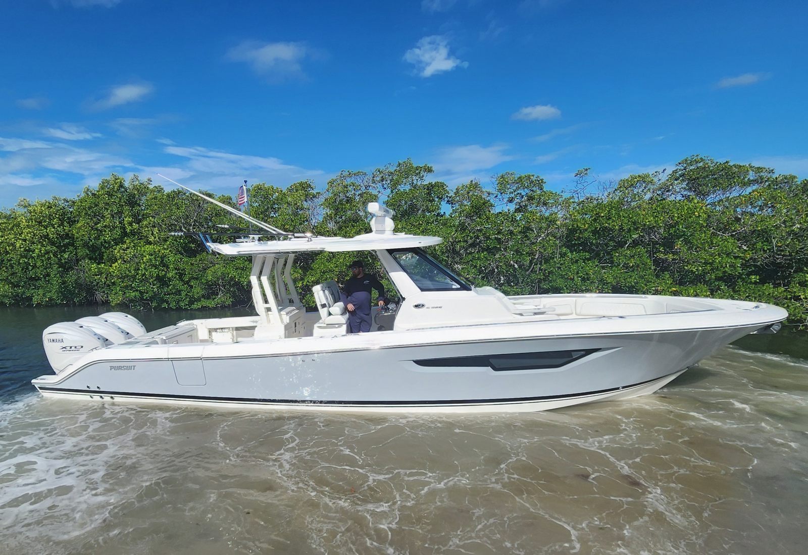 The Pursuit S 388 Center Console truly shines in a variety of scenarios. For family outings, the spacious layout and comfortable seating make it easy to bring everyone along for a day of swimming, picnicking, or exploring new destinations. Fishing trips are elevated by the dedicated rod holders and ample deck space, allowing anglers to pursue their passion with ease. Luxury getaways are enhanced by the boat’s premium finishes, climate-controlled cockpit, and versatile sunshade systems, creating a resort-like experience on the water.Whether you’re hosting a lively gathering, enjoying a quiet sunset cruise, or embarking on an offshore adventure, the S 388 adapts to your needs and ensures every outing is memorable. Its combination of power, comfort, and style makes it a standout choice for those who want the very best in a Center Console boat for sale.