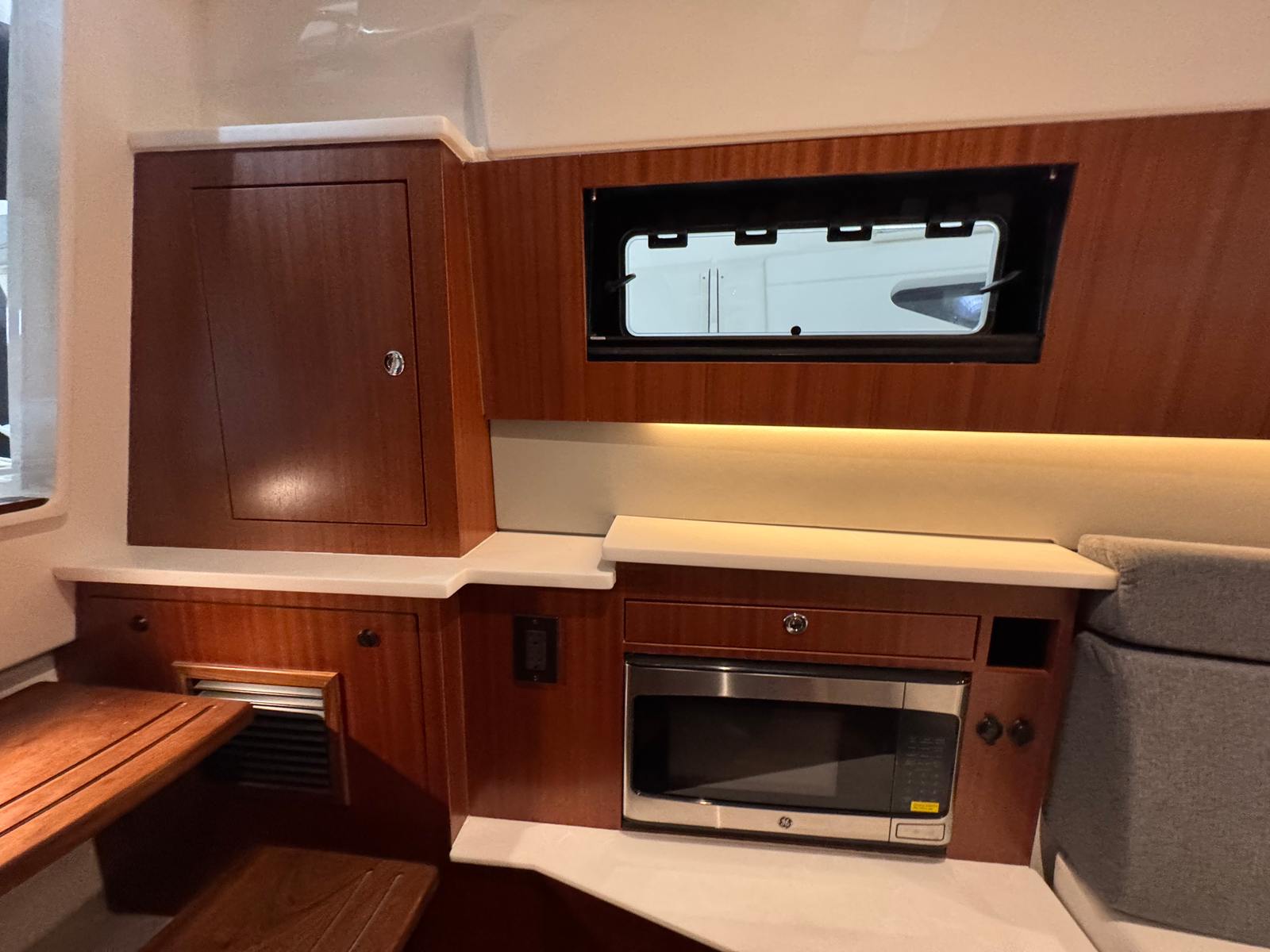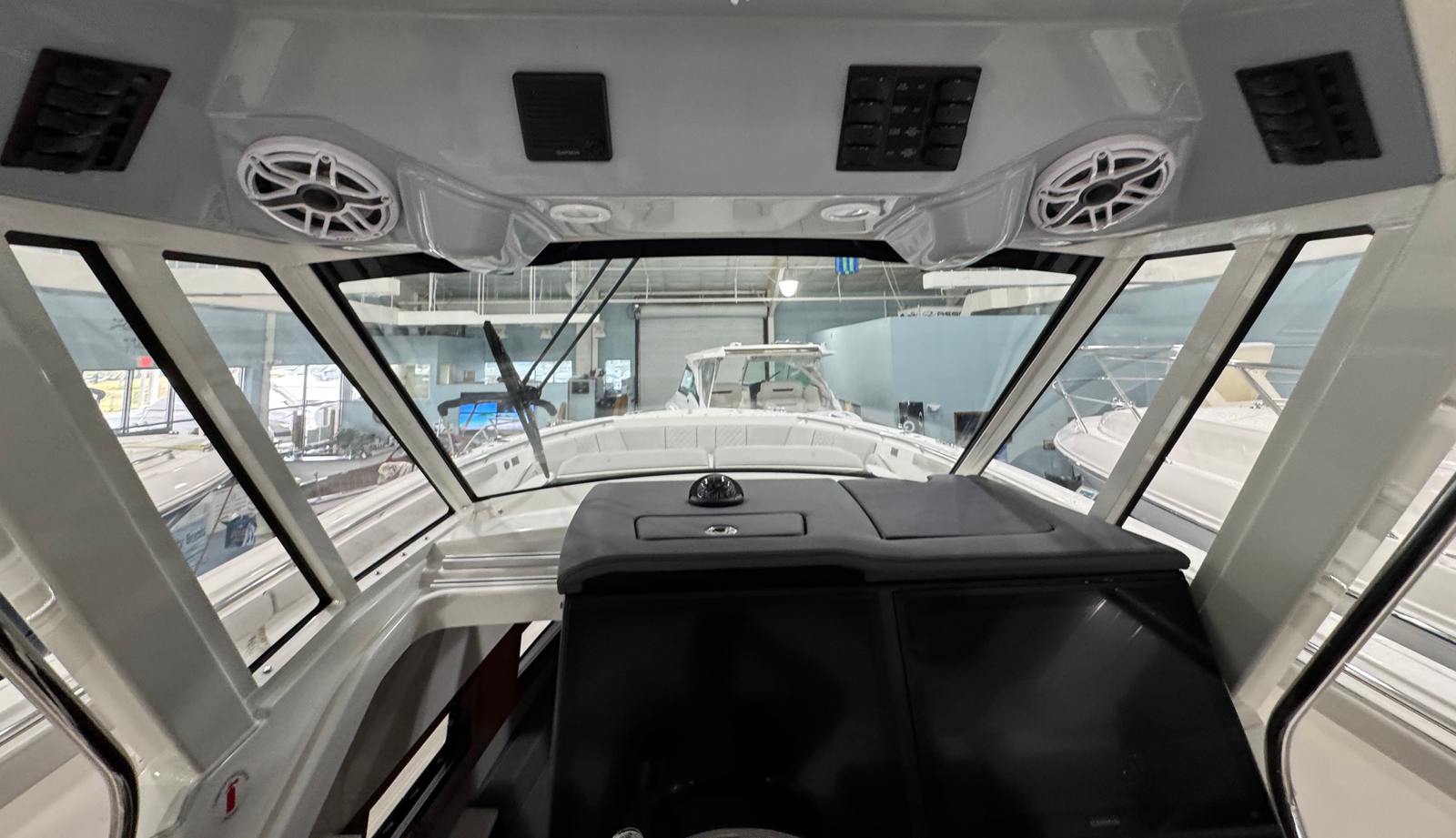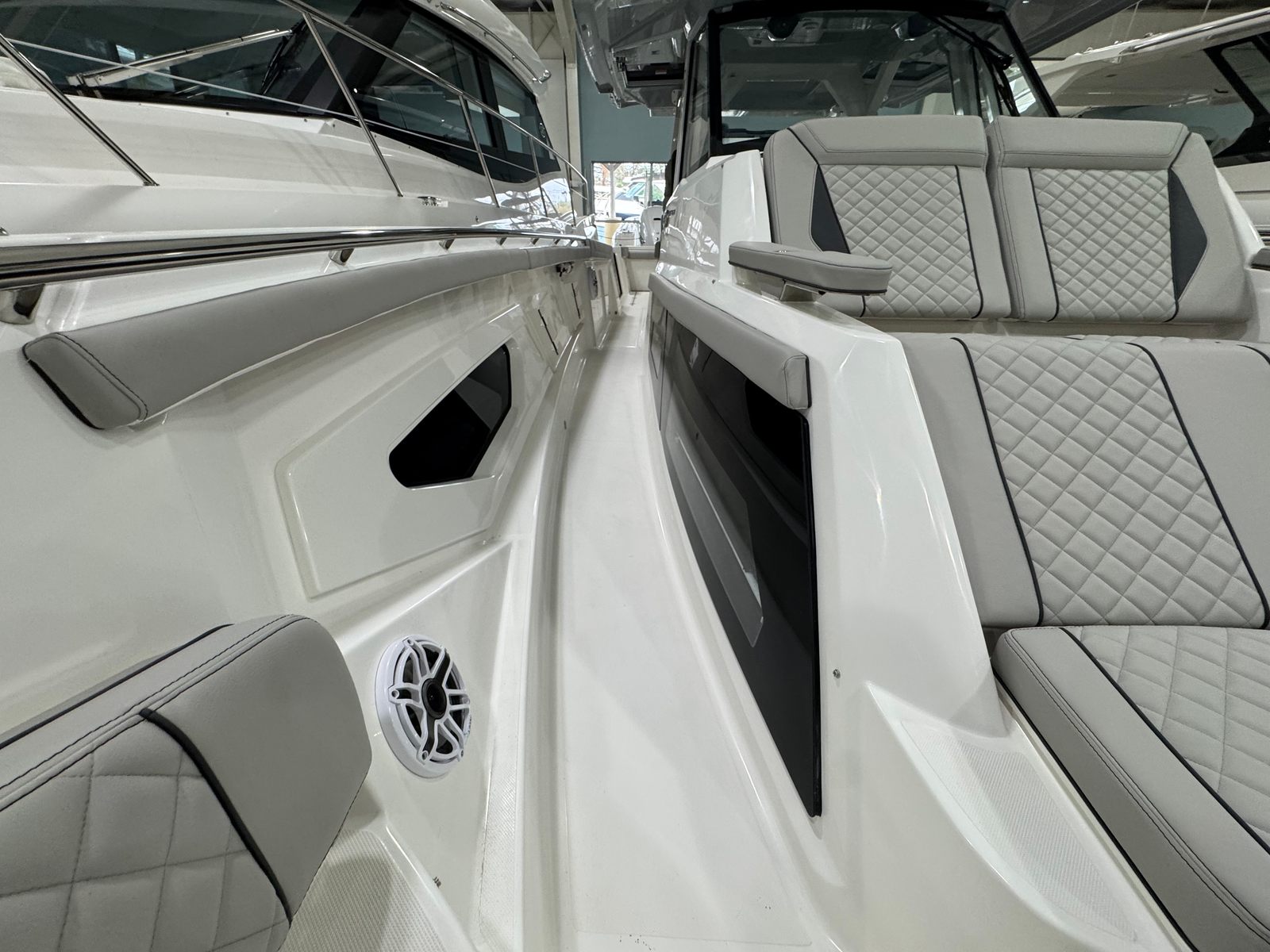 The Pursuit S 428 is packed with premium features designed to enhance your time on the water. Enjoy the comfort and convenience of an electric retractable cockpit sun shade, which provides instant relief from the sun and creates a cool, shaded area for relaxing or entertaining. The upgraded amp and speakers with zone control and Sirius satellite radio ensure you have the perfect soundtrack for every adventure, with crystal-clear audio throughout the boat.For added protection and style, the S 428 includes a White Stamoid LT helm/comp seat cover, instrument cover, and bow seating cover, keeping your boat’s interior pristine and ready for action. The 240V/60HZ cockpit air conditioning system keeps the helm and cockpit cool, even on the hottest days, while the white helm and footrest color add a touch of elegance to the command center.Fishing enthusiasts will appreciate the bolt-on hardtop rod holders (six in total), providing secure storage for your gear and easy access when the action heats up. The upgraded cockpit cooler box, now a chill box with no foam, ensures your drinks and snacks stay refreshingly cold throughout your trip. The platinum boot stripe adds a sophisticated finishing touch to the boat’s exterior, highlighting its premium status.