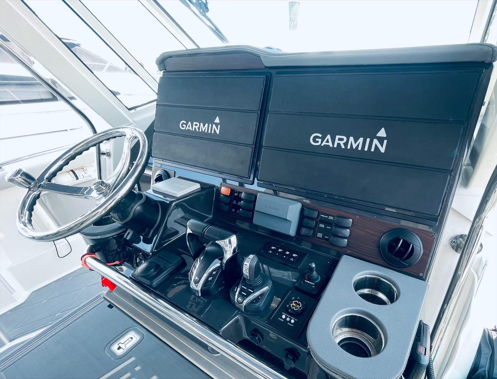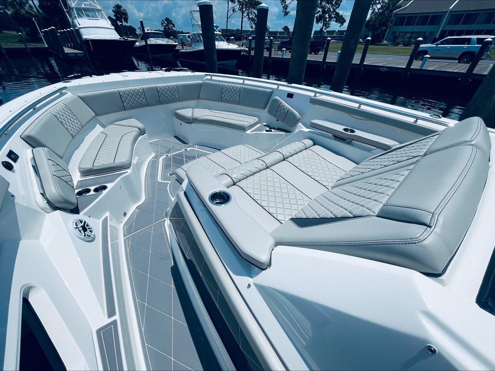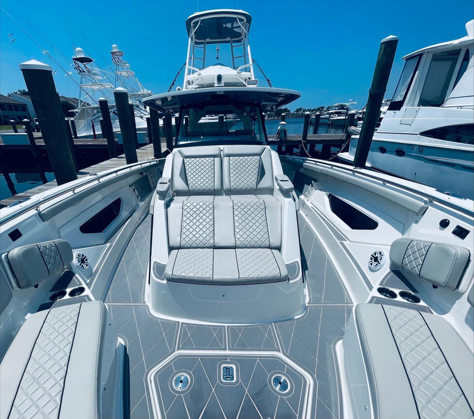 Beyond its impressive performance and luxurious features, the Pursuit S 428 Center Console is designed with practicality in mind. The boat’s ample storage compartments make it easy to stow gear, supplies, and personal items, keeping the deck tidy and organized. The advanced helm station and intuitive controls simplify navigation, while the quad-engine setup enhances fuel efficiency and reliability. Docking is effortless thanks to the boat’s responsive handling and maneuverability, allowing you to enjoy more time on the water and less time worrying about logistics. Whether you’re planning a weekend getaway or a spontaneous day trip, this Pursuit boat for sale offers the flexibility and convenience you need for stress-free boating.