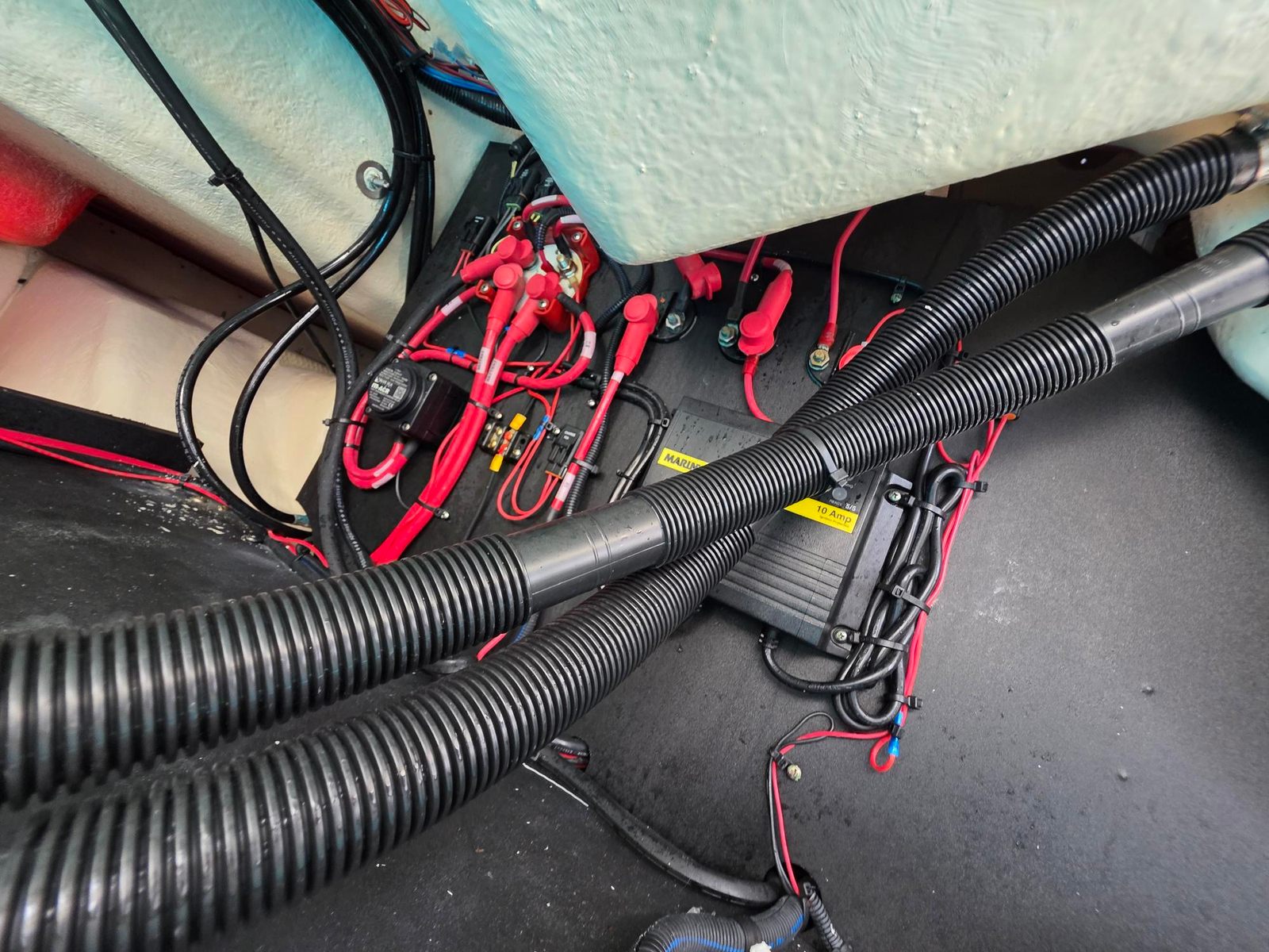 The helm is designed with the captain in mind, featuring an ergonomic layout and premium electronics that make navigation simple and enjoyable. A Garmin GPSMap XS system provides advanced navigation, chart plotting, and situational awareness, ensuring you’re always in control on the water. An auto trim tabs controller further enhances performance by automatically optimizing the boat’s running angle for a smoother, more efficient ride in varying conditions.
