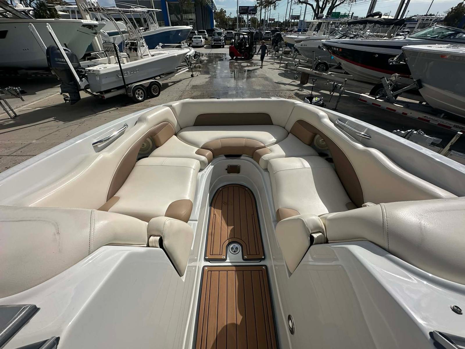 The Crownline E26XS is packed with features that enhance your boating experience. Its spacious 26-foot layout provides ample room for family and friends, while the center console design ensures easy movement throughout the boat. The ergonomic helm is thoughtfully arranged for intuitive control, allowing you to navigate with ease and precision. The boat’s durable construction and high-quality materials reflect Crownline’s commitment to excellence, ensuring lasting value and enjoyment.Special features of the E26XS include a versatile deck layout that is perfect for both relaxation and activity. The open bow area invites sunbathing and socializing, while the center console configuration provides excellent visibility and access to all areas of the boat. The generous storage compartments are ideal for stowing gear, water toys, and fishing equipment, keeping the deck clutter-free and organized. The E26XS’s innovative design also makes it easy to customize for your preferred activities, whether you’re setting up for a day of fishing or preparing for a sunset cruise.