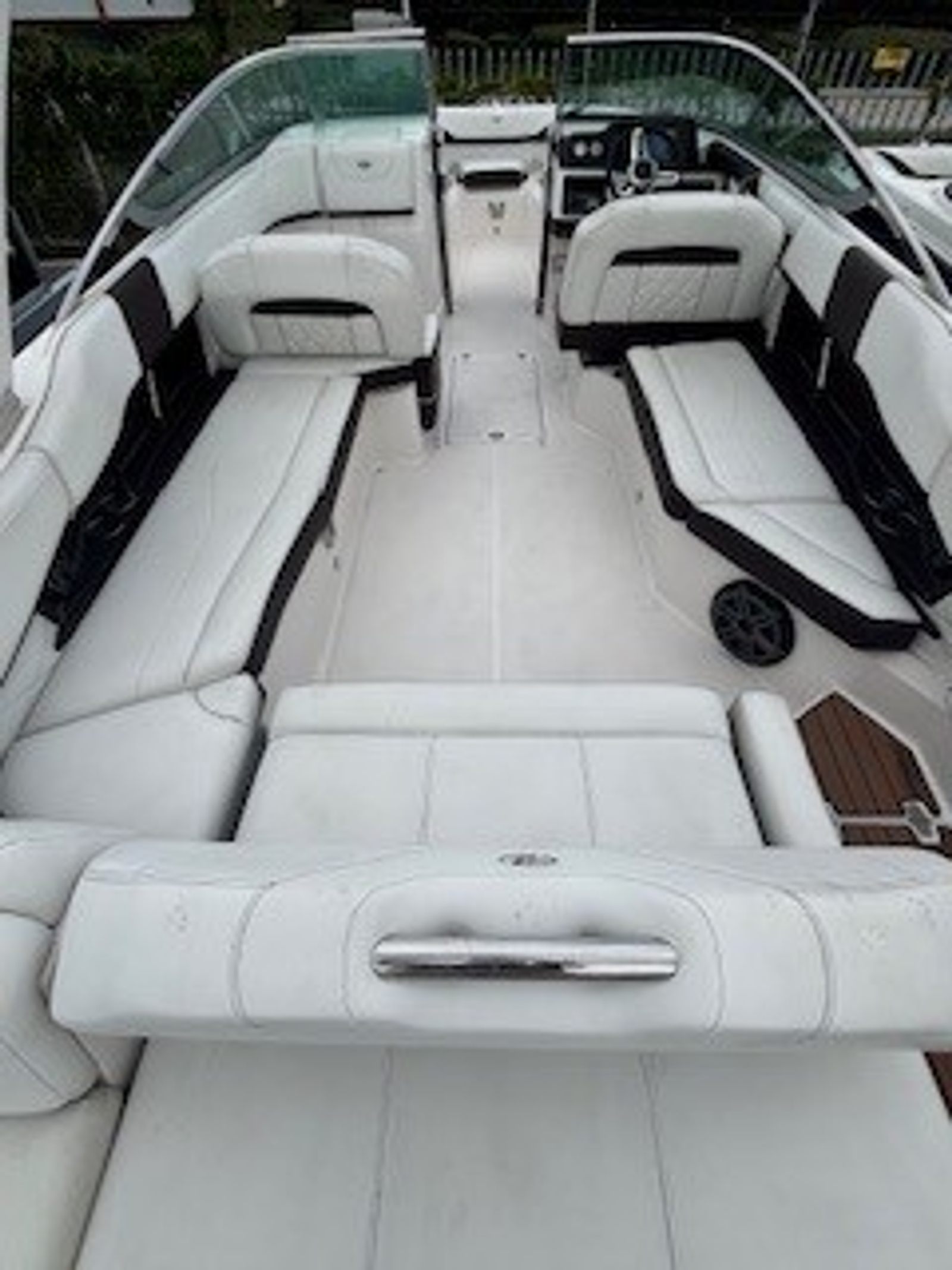 • Easy Water Access: The wrap-around SeaDek swim platform and walkthrough transom make boarding, swimming, and hooking up watersports gear a breeze.