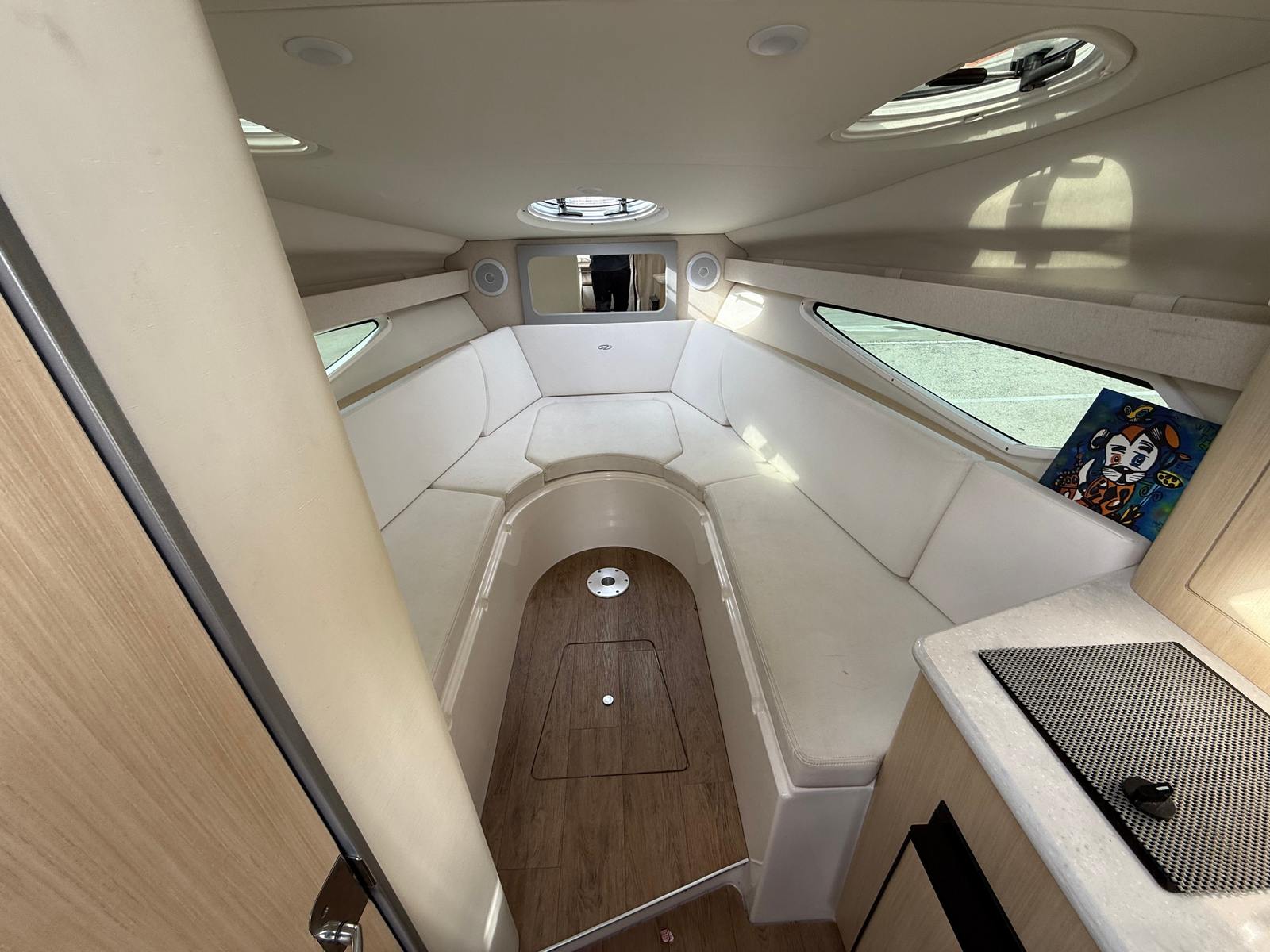 At the heart of the Regal 28 Express is a powerful single engine delivering an impressive 350 horsepower. This robust engine ensures smooth acceleration, responsive handling, and reliable performance whether you’re cruising along the coastline or exploring inland waterways. The Regal 28 Express is engineered for efficiency and agility, making it easy to maneuver in marinas, dock with confidence, and enjoy a thrilling ride across open water. The combination of power and precision makes this cruiser boat for sale a standout in its class, offering both excitement and peace of mind for boaters of all experience levels.