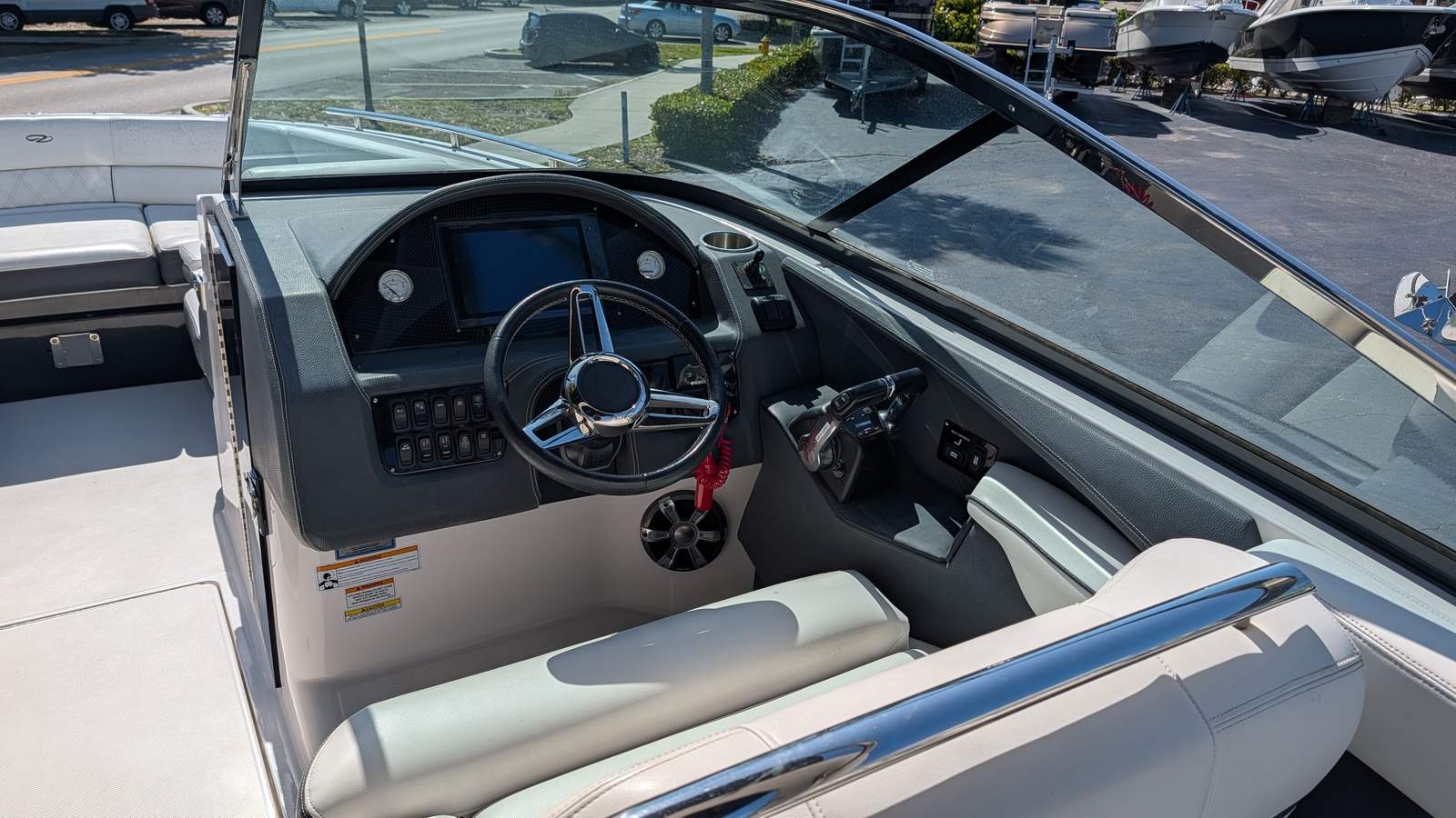 The Regal 29 OBX is packed with features designed to maximize comfort, convenience, and enjoyment. Its spacious layout offers ample seating for family and friends, allowing everyone to relax and soak up the sun. The open bow area is perfect for lounging, socializing, or enjoying the scenic views. The cockpit is thoughtfully designed with high-quality materials and attention to detail, providing a luxurious atmosphere for all your guests.This bowrider boat for sale also features a user-friendly helm with intuitive controls, making it easy to operate and navigate. The twin engines not only enhance performance but also contribute to a smoother and more stable ride, even in choppy waters. With plenty of storage throughout the boat, you can easily stow away gear, water toys, and personal items, keeping the deck clutter-free and organized.