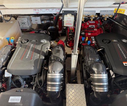 Freshwater and meticulously maintained, don’t miss your opportunity to own this beautiful 2-owner 2019 Regal 35 Sport Coupe. She’s brand new to the sales dock and ready for immediate delivery. The current owner already has his next boat picked out and is ready to make a deal. Where sport meets luxury, the 35 Sport Coupe is fast, agile, and effortless to dock with Volvo’s EVC Joystick. Powered by Twin Volvo V8 300 DP CAT engines (130 hours) and a Westerbeke Generator (75 hours), she delivers smooth cruising with a 225-mile range.
