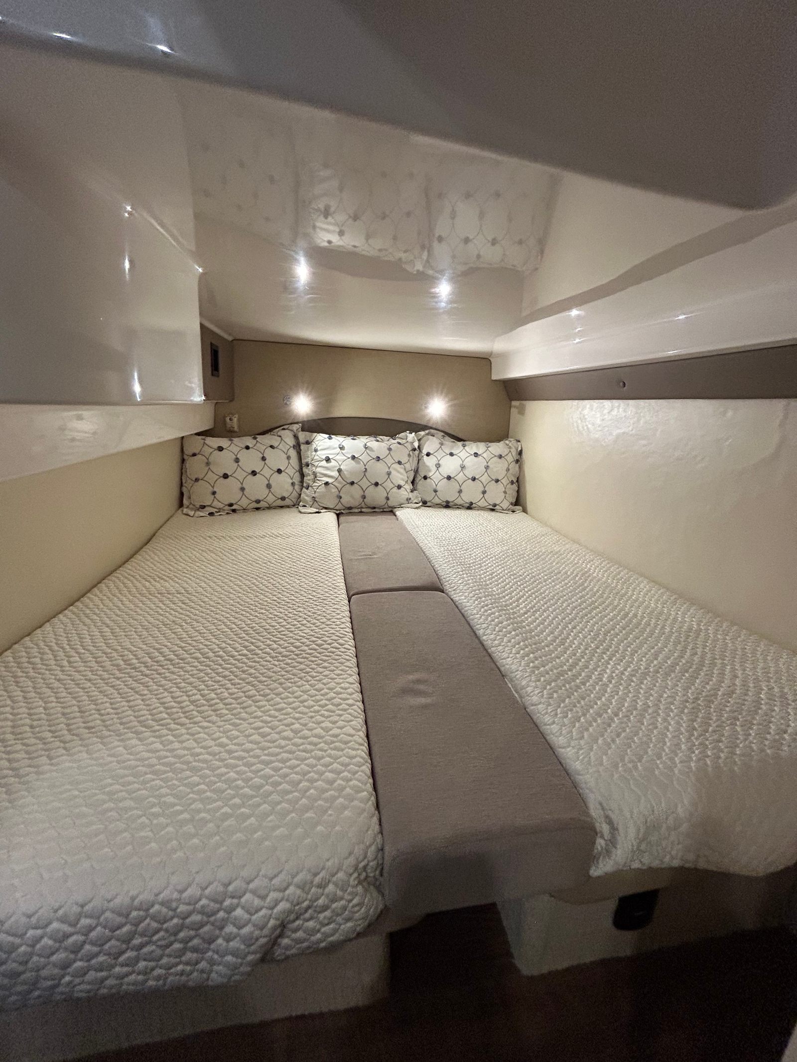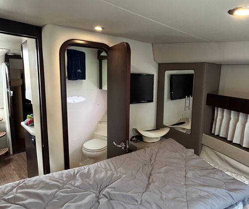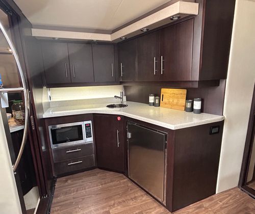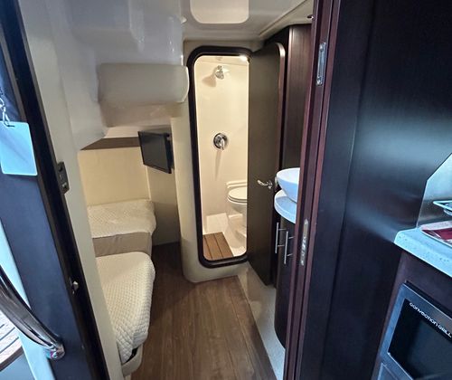 Practicality meets luxury in the Regal 42 Sport Coupe. The generous storage options throughout the yacht ensure that all your gear, supplies, and personal items are neatly stowed and easily accessible. The extended swim platform makes boarding and disembarking a breeze, while also providing a safe and convenient spot for water activities. The yacht's efficient design and reliable battery system help maximize fuel efficiency and minimize downtime, so you can spend more time enjoying the water and less time worrying about maintenance. Docking is simplified by the yacht's responsive handling and intuitive controls, making it easy for both seasoned captains and newcomers to enjoy stress-free boating.