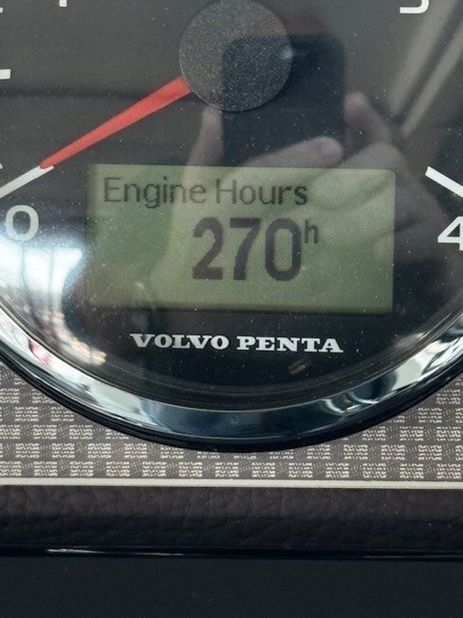 Powered by twin Volvo IPS 400s (300HP each) with only 270 hours, this Regal delivers a smooth, efficient ride, cruising comfortably at 30-32 MPH while burning just 20-22 gallons per hour—outshining the competition in both speed and fuel efficiency. The generator, with 450 hours, runs flawlessly, providing reliable power for extended trips on the water.