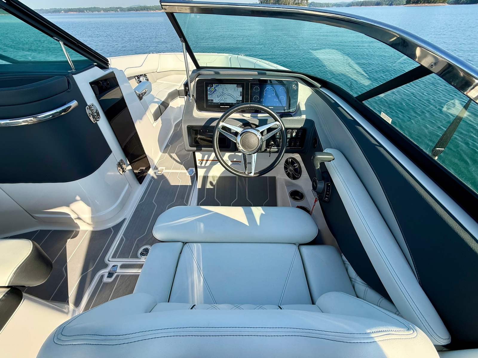 Powering the Regal LS6 is a robust single engine delivering an impressive 350 horsepower. This setup ensures that the LS6 is not just about looks—it’s built for exhilarating performance on the water. The powerful engine provides quick acceleration, responsive handling, and the ability to reach thrilling speeds, making it ideal for water sports enthusiasts and those who love the rush of open water. Whether you’re cruising along the shoreline or towing a wakeboarder, the LS6’s engine performance guarantees a dynamic and enjoyable ride every time you hit the water.
