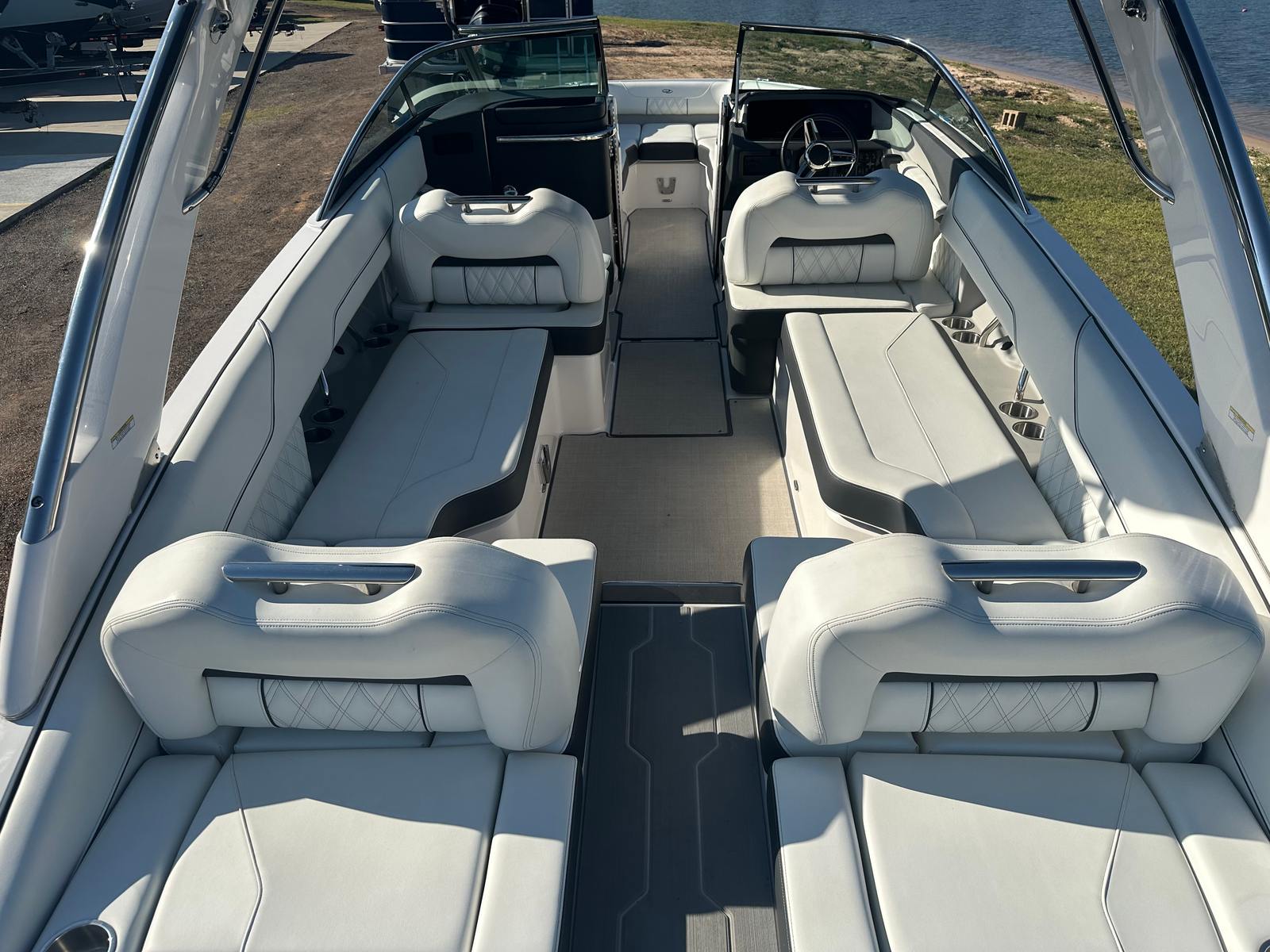 The Regal LS6 is packed with features that enhance both functionality and enjoyment. Its 26-foot length provides ample space for passengers to relax, socialize, and soak up the sun. The bowrider layout is perfect for maximizing seating and creating an open, inviting atmosphere. Regal’s attention to detail is evident in every aspect of the LS6, from the ergonomic seating to the stylish finishes. The boat’s design prioritizes both aesthetics and practicality, ensuring that every outing is comfortable and enjoyable. Special features such as the spacious bow seating area, integrated swim platform, and intuitive helm layout make the LS6 a standout choice among bowrider boats for sale.