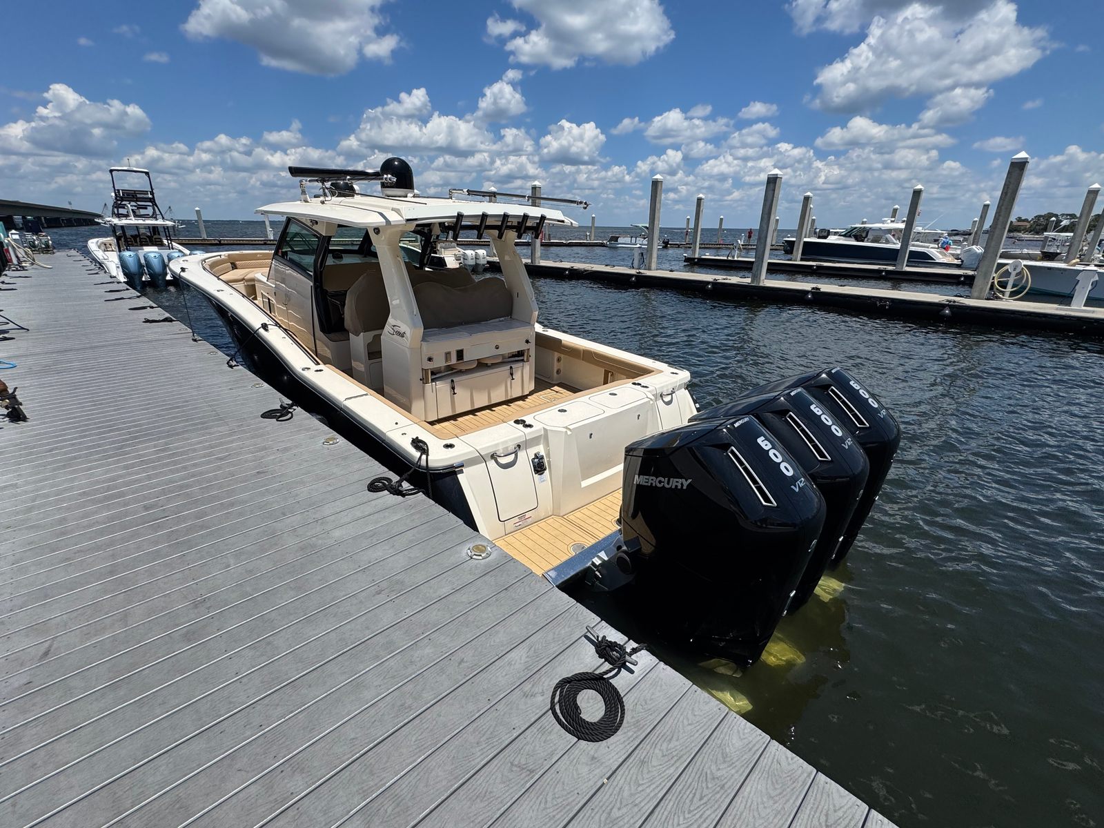 In summary, the 2022 Scout 425 LXF is a premier center console boat for sale that offers unmatched performance, luxury, and versatility. With its powerful triple-engine setup, spacious and well-appointed deck, and advanced features, this used Scout boat for sale is ready to deliver endless fun and adventure on the water. If you are searching for a boat that combines style, comfort, and capability, the Scout 425 LXF is an exceptional choice. Do not miss the opportunity to make this remarkable vessel your own—contact the dealer today to learn more and schedule a viewing.