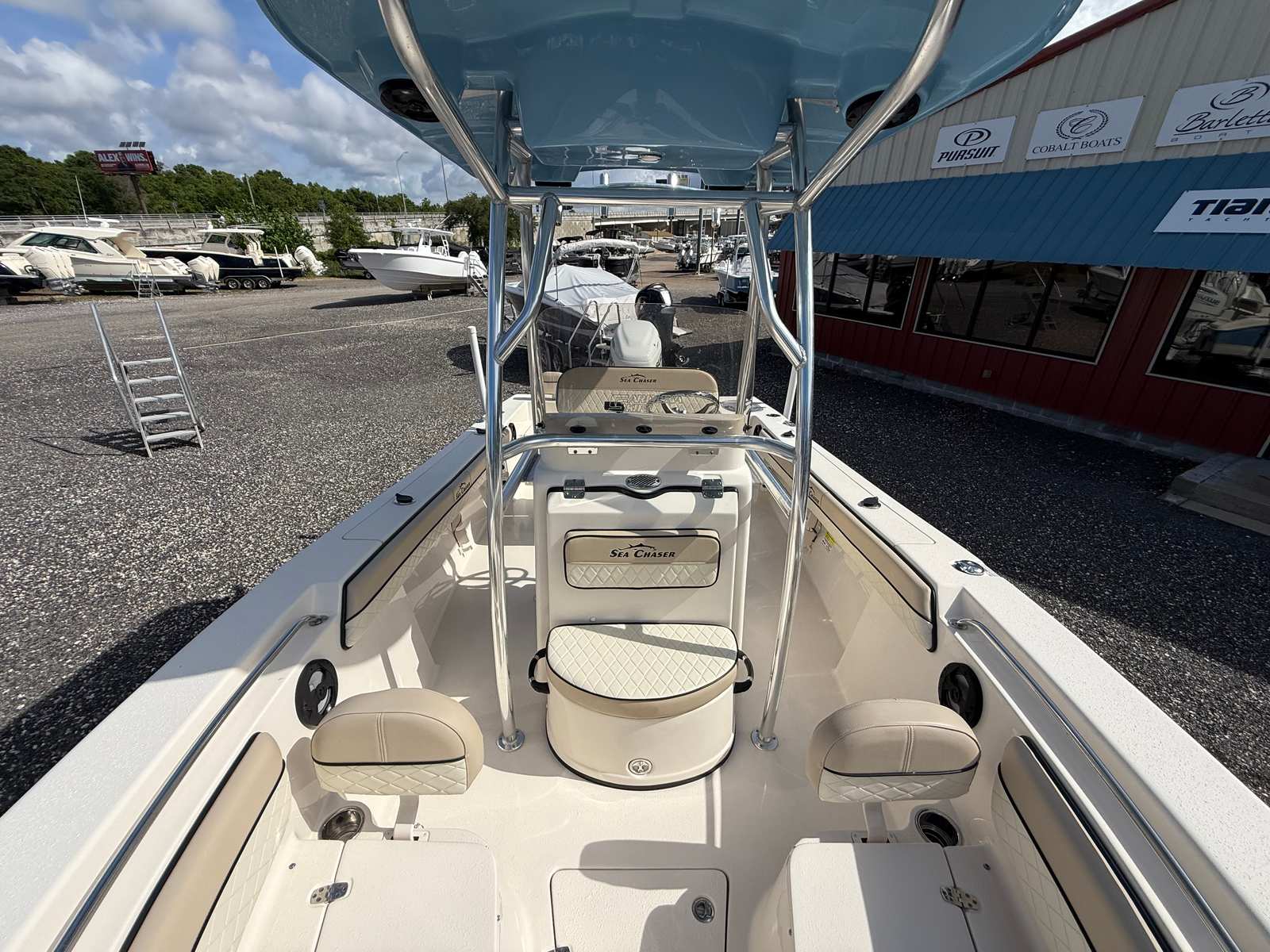 The Sea Chaser 22 HFC is designed with the needs of both anglers and families in mind. Its center console layout offers ample space for movement, making it easy to fish, entertain, or simply relax. The 22-foot length provides a stable and comfortable ride, while the thoughtful design ensures that every inch of space is used efficiently. Special features of this model enhance both functionality and enjoyment, making it a standout among center console boats for sale.
