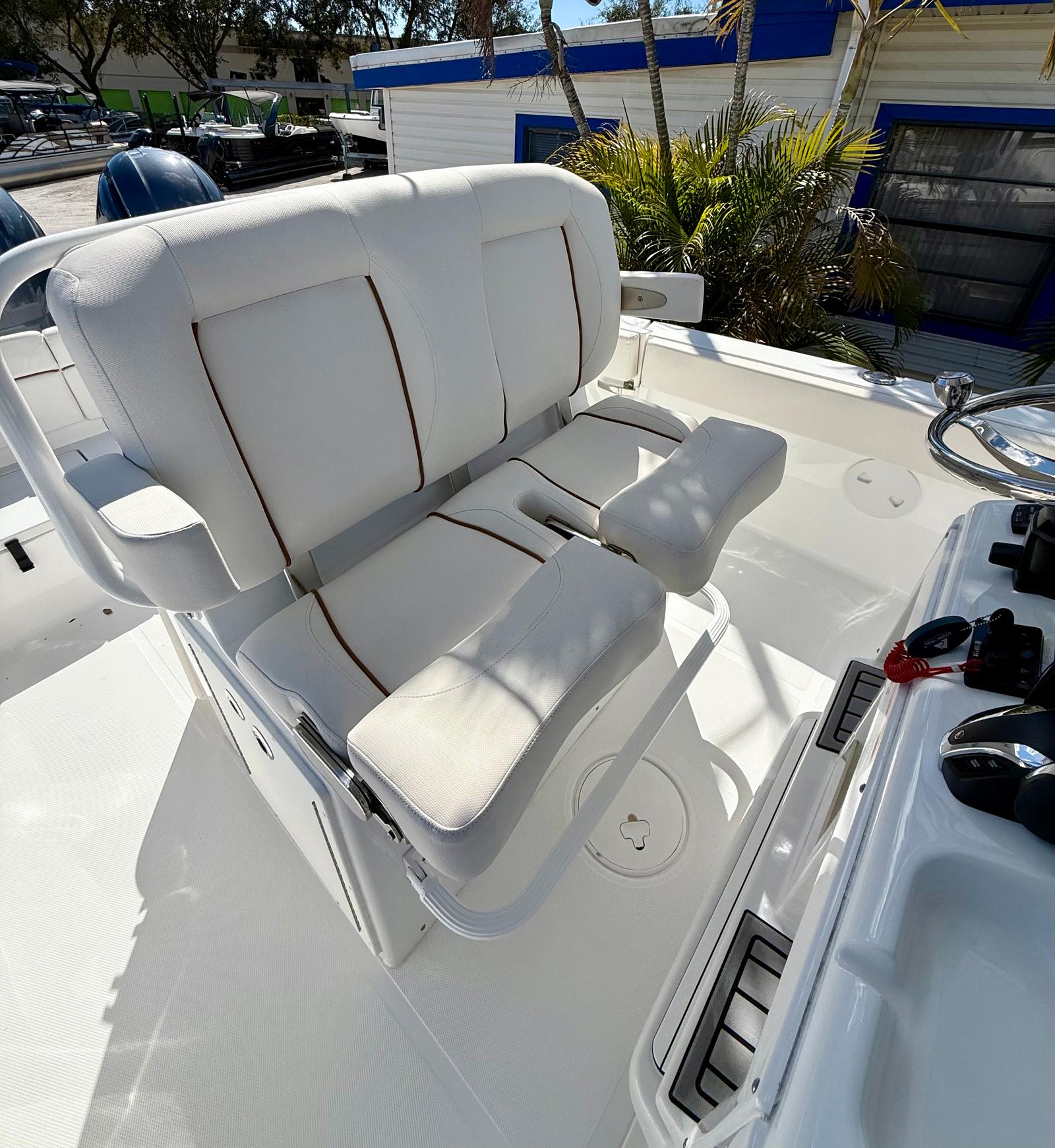 This center console boat for sale is as practical as it is enjoyable. The efficient hull design and powerful engines provide excellent fuel economy, allowing you to spend more time exploring and less time refueling. The intuitive layout makes docking and maneuvering straightforward, even for less experienced boaters. Generous storage options mean you can bring along everything you need for a day of fishing, water sports, or relaxation without cluttering the deck. The durable construction and quality materials ensure that your investment will stand the test of time, providing years of reliable service and enjoyment.