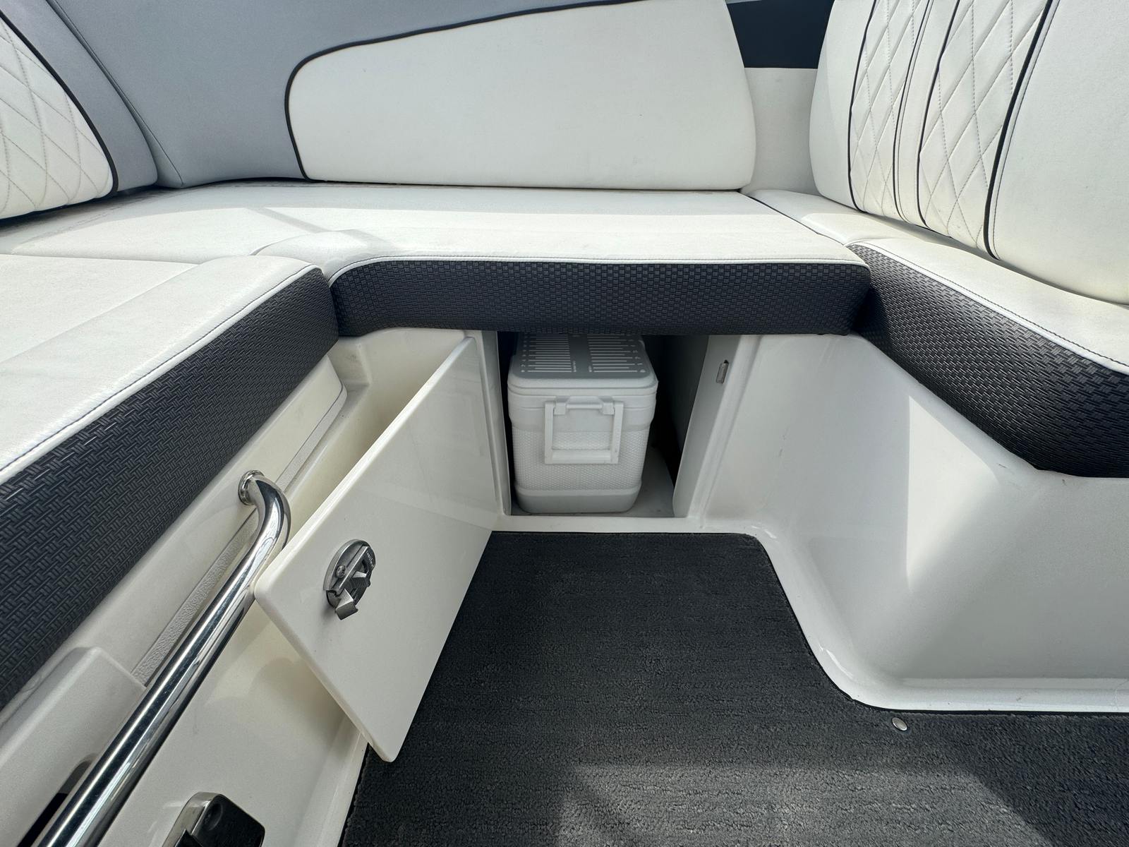 Powering this Bowrider is a single engine boasting 250 horsepower, delivering a smooth and exhilarating ride. The dual prop feature enhances acceleration and maneuverability, making it easy to navigate tight turns and enjoy water sports. With only 92 engine hours, this Sea Ray SDX 240 offers plenty of life left for future adventures. Whether you’re cruising at a leisurely pace or pushing the throttle for some excitement, the SDX 240’s performance is sure to impress. Annual service ensures the engine remains in top condition, providing peace of mind and reliability every time you hit the water.