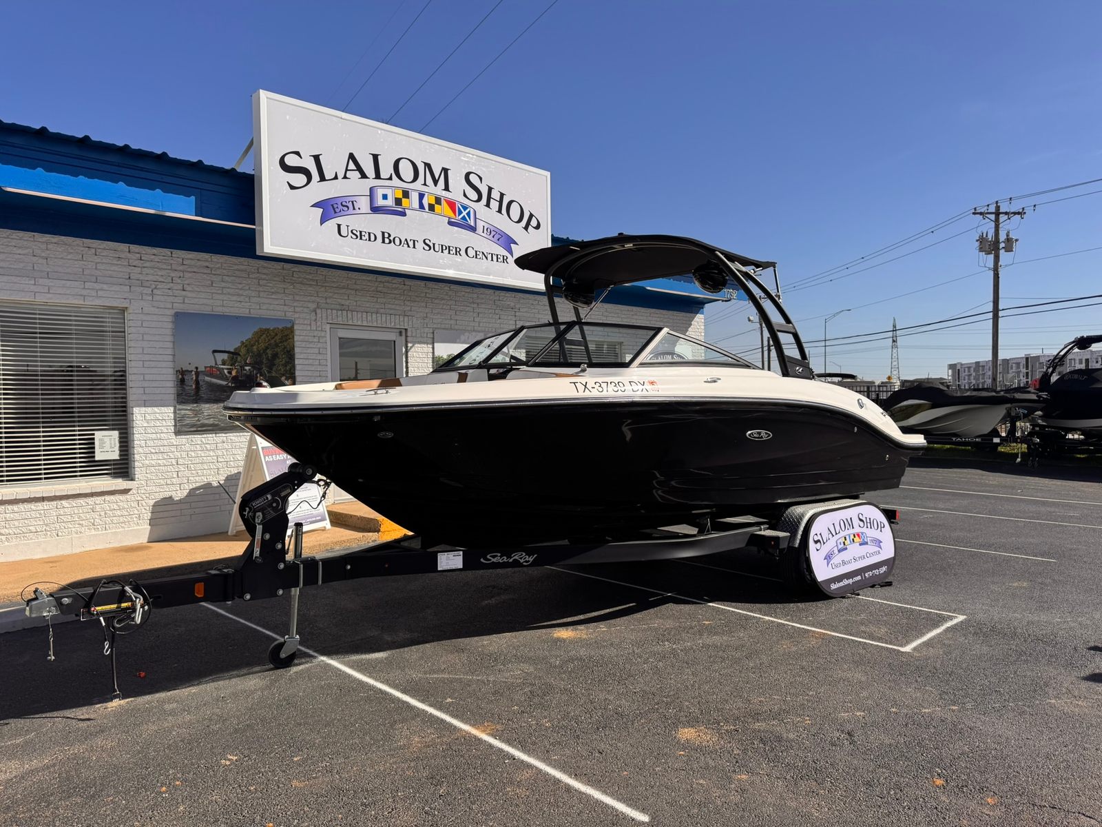 Now available at our Used Boat Super Center in Lewisville, this 2018 Sea Ray SPX 210 is a clean, well-equipped sport boat designed for family cruising, watersports, and relaxing days on the lake. Finished in a sleek black and white gelcoat with a white and tan interior, this SPX 210 is powered by a MerCruiser 4.5L engine producing 250 horsepower with the convenient Quick Drain system and only 88 hours of use.
