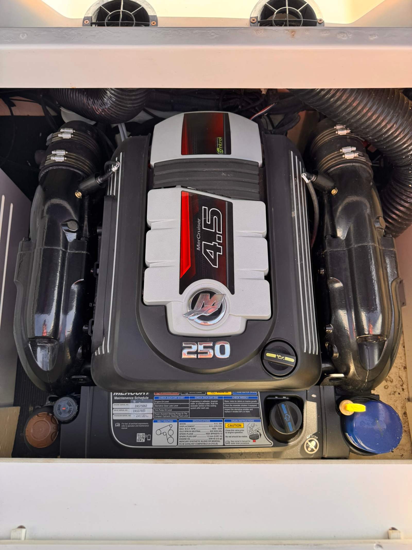 Powering this Sea Ray SPX 210 is a robust single engine delivering an impressive 260 horsepower. This setup provides exhilarating acceleration and responsive handling, making every outing a true pleasure. With only 88 engine hours, the engine is in excellent condition, offering reliable performance and peace of mind for your boating adventures. Whether you’re cruising at a leisurely pace or kicking up the speed for water sports, the SPX 210’s power and agility ensure a smooth and thrilling ride every time.