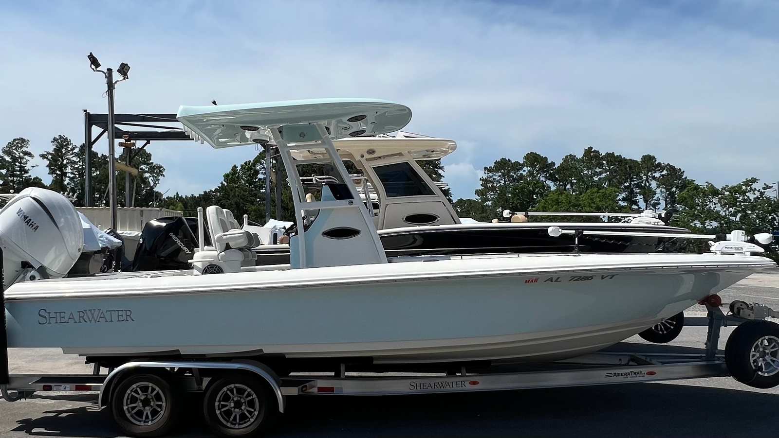 • Includes a custom-fit 2022 AmeraTrail Tandem Axle Trailer – Built specifically for the Shearwater 260 SS with welded aluminum construction, torsion axles, and premium components for smooth, reliable towing.