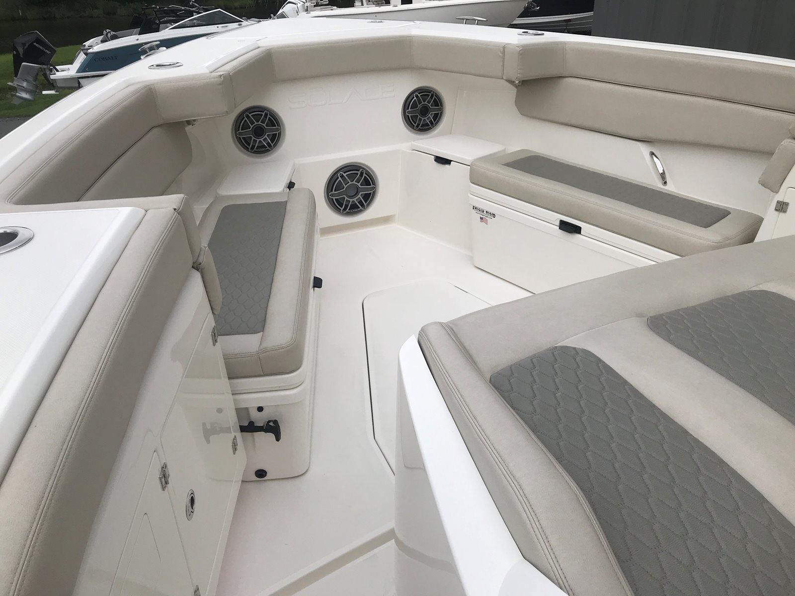 Owning the Solace 41 CS means embracing a lifestyle of fun, relaxation, and adventure. The spacious deck layout is perfect for social gatherings, allowing guests to move freely and enjoy panoramic views. The advanced stabilizer system and generous shade options ensure comfort during long days on the water, while the powerful triple engines provide the speed and agility needed for thrilling offshore excursions.The premium electronics package keeps you connected and informed, whether you’re navigating unfamiliar waters or tracking fish beneath the surface. The custom finishes and painted hull sides make a bold statement, ensuring your Solace boat for sale stands out wherever you go.