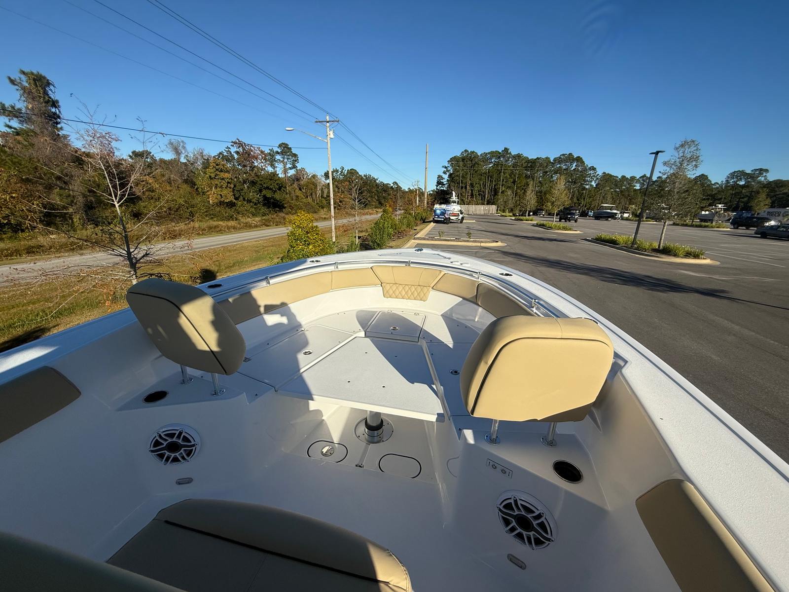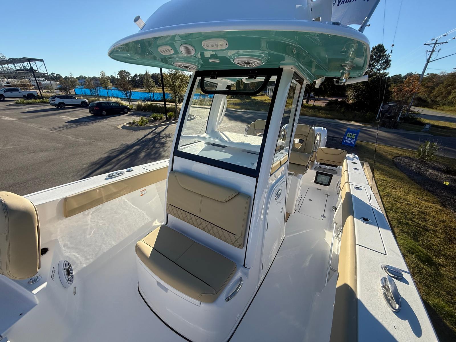 The Sportsman Heritage 261 is packed with premium features designed to enhance your boating experience. The Edson 13” stainless steel Comfort Grip steering wheel with PowerKnob ensures precise maneuvering and comfort at the helm. The half tower with a second station offers elevated visibility and control, perfect for spotting fish or navigating busy waterways. For advanced navigation and safety, the Garmin GMR Fantom 18x Radome is included at the second station, providing cutting-edge radar capabilities. The Yamaha Helm Master EX system, tailored for twin engines, brings intuitive control and autopilot convenience to your fingertips. Every detail, from the powder-coated accents to the plush Coastal Beige upholstery, reflects Sportsman’s commitment to quality and innovation.
